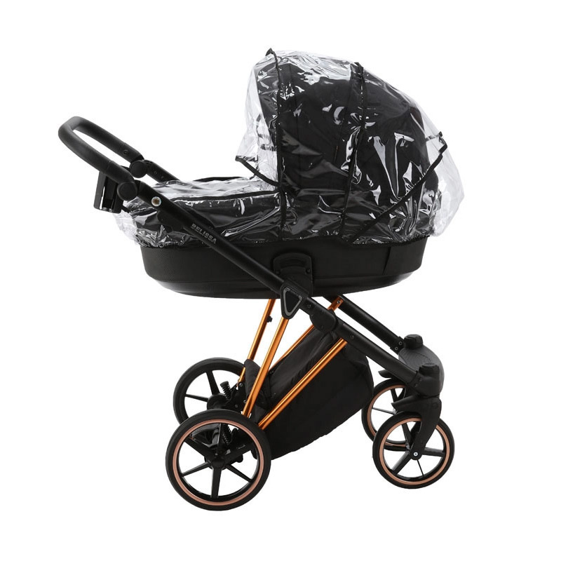 Adamex Belissa, bestsellerowy wózek głęboko-spacerowy łączący funkcjonalność z eleganckim designem. Wersja Special Edition wyposażona jest w polerowany stelaż oraz eleganckie dodatki pod kolor ramy. Przeznaczony jest dla dzieci od urodzenia do maksymalnej wagi 22 kg. Stelaż składa się łatwo na płasko, a po złożeniu stoi samodzielnie. Specjalna blokada uniemożliwia samoczynne rozłożenie się stelaża. Bezobsługowe i wytrzymałe koła z pianki poliuretanowej są odporne na ścieranie i przebicia Sprężynowa amortyzacja umieszczona na tylnym zawieszeniu (z możliwością regulacji jej twardości) i przednich kołach poradzi sobie na niewymagającym terenie. Hamulec umieszczony na tylnej osi nie niszczy butów i jest łatwy w obsłudze. Kosz na drobiazgi pod siedziskiem jest duży i dodatkowo zamykany. Łamana rączka pokryta ekoskórą jest regulowana i z łatwością można ją dopasować do wzrostu rodzica.