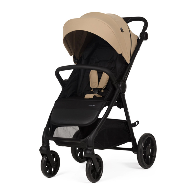 Adamex Prime, duży i wygodny wózek spacerowy z amortyzacją na wszystkie koła. Przeznaczony jest dla dzieci od około 6 miesiąca życia do maksymalnej wagi 22 kg. Stelaż składa się łatwo, a po złożeniu stoi samodzielnie. Specjalna blokada zabezpiecza stelaż przed przypadkowym rozłożeniem. Bezobsługowe i wytrzymałe koła z pianki EVA posiadają oddzielną amortyzację. Przednie koła są skrętne z możliwością zablokowania do jazdy na wprost, co ułatwia manewrowanie. Hamulec umieszczony na tylnej osi nie niszczy butów i jest łatwy w obsłudze. Kosz na drobiazgi pod siedziskiem wytrzyma obciążenie do 2 kg. Pełna rączka jest łamana i regulowana w 3 poziomach.