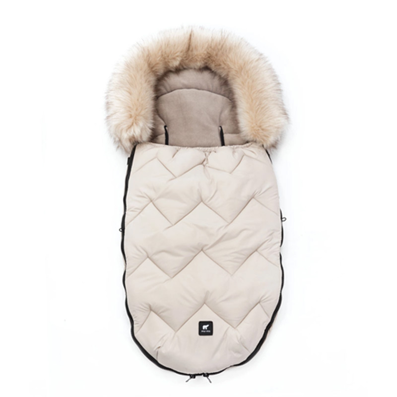 Śpiworek sprawdza się zarówno w gondolach, spacerówkach, jak i na sankach, a jego przemyślany kształt zapewnia dziecku swobodę ruchu i wygodę. Wnętrze w dolnej części, gdzie znajdują się nóżki, obszyto praktycznym materiałem odpornym na zabrudzenia – idealne rozwiązanie podczas zimowych spacerów. Stylowy kaptur został wykończony eleganckim, odpinanym futerkiem. Dzięki dołączonej smyczy możesz zamocować futerko również na budce wózka lub gondoli. Śpiworek MIU-MIO K2 wyposażono w otwory na pasy bezpieczeństwa, co umożliwia bezpieczne i stabilne mocowanie w wózku. Można rozpiąć jego wierzchnią warstwę, wtedy K2 staje się ciepłą wkładką do spacerówki lub praktycznym przykryciem na nóżki.