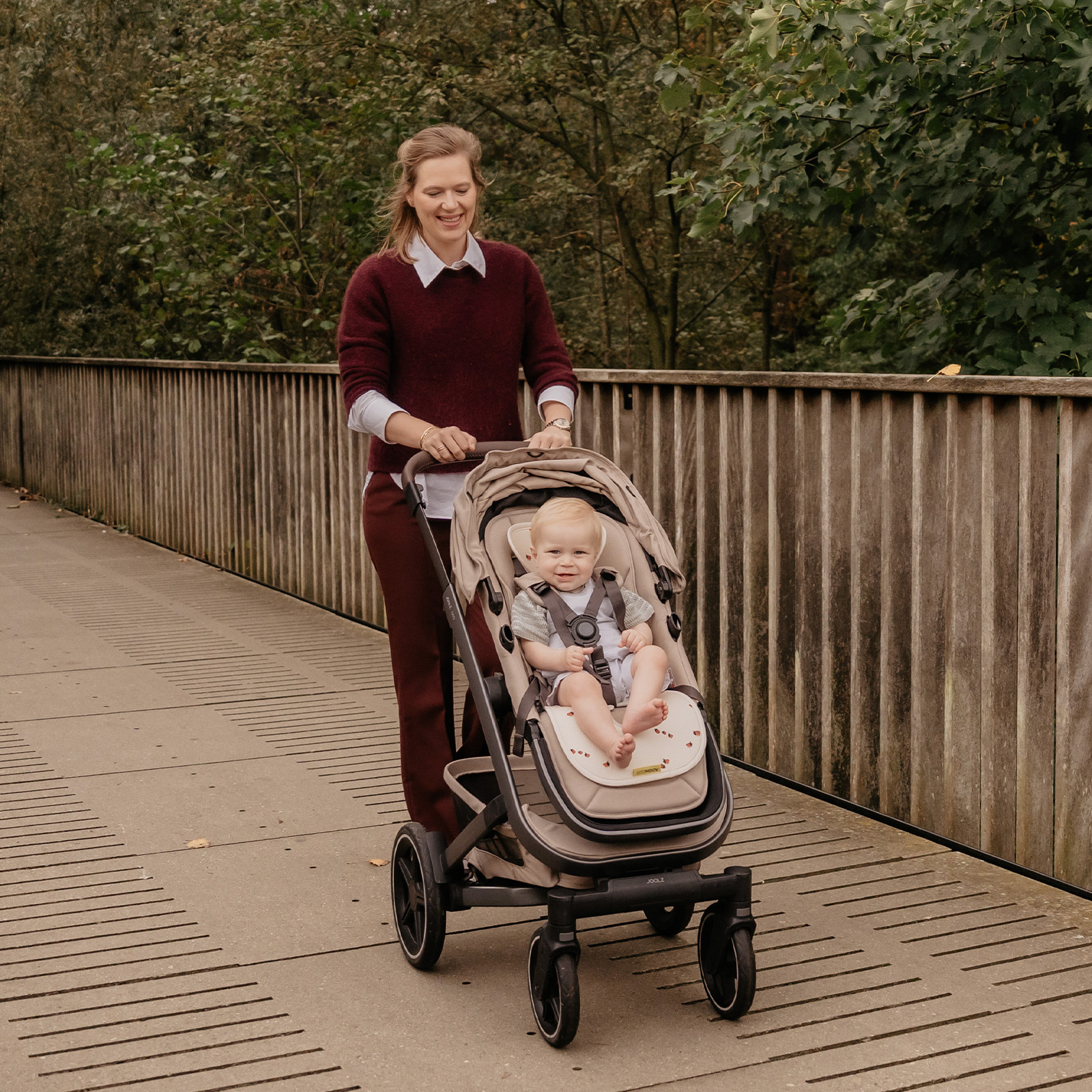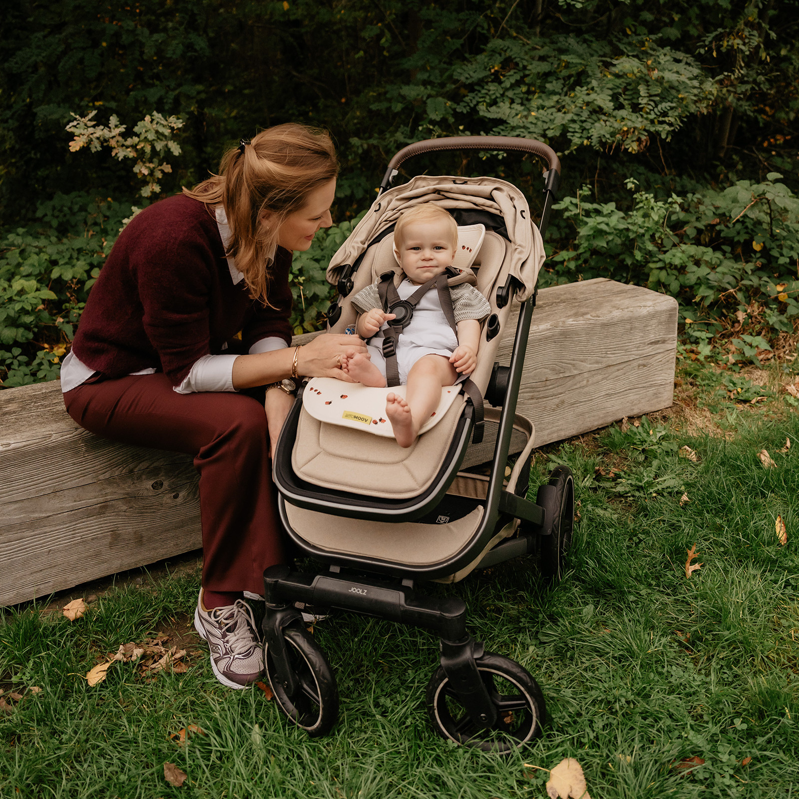 Oficjalne materiały AeroMoov wskazują, że Air Layer pomaga utrzymać dziecko świeże i suche w wózku lub foteliku. Miękka, chłonna warstwa z organicznej bawełny zwiększa komfort kontaktu z wkładką, a jednocześnie pomaga wchłaniać nadmiar potu. To szczególnie przydatne podczas cieplejszych spacerów lub dłuższego siedzenia w wózku.