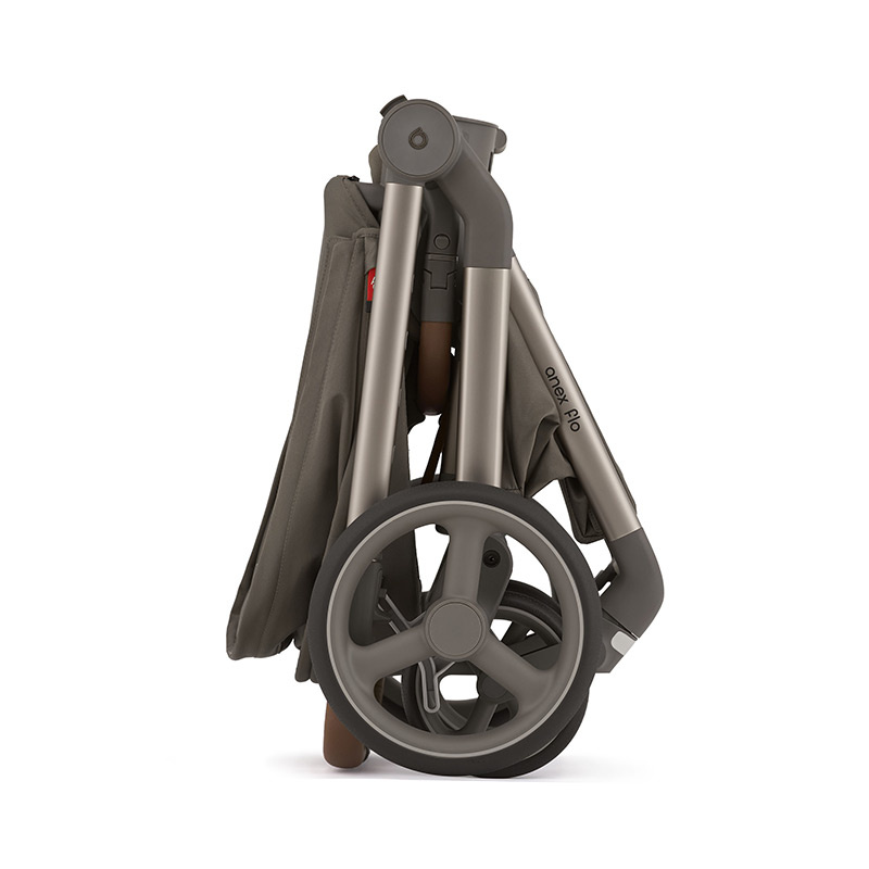Anex Flo, designerski i ergonomiczny wózek dla aktywnych rodziców. Edycja #1 powstała we współpracy z Cesarem Idrobo. Przeznaczony jest dla dziecka od urodzenia do maksymalnej wagi 22 kg. Stelaż wykonany jest z wytrzymałego i lekkiego aluminium, a jego waga razem z kołami to 7 kg. Składa się do kompaktowych rozmiarów, razem z siedziskiem wpiętym zarówno przodem, jak i tyłem do kierunku jazdy. Po złożeniu stoi samodzielnie, dzięki czemu zajmuje mało miejsca. Specjalna rączka ułatwia jego przenoszenie z miejsca na miejsce. Duże, bezobsługowe koła zapewniają wysoką jakość prowadzenia i manewrowania. Dobra amortyzacja na każde koło sprawia, że wózek Flo prowadzi się gładko również poza miastem, na trudniejszym terenie. Pełna rączka pokryta ekoskórą jest regulowana teleskopowa w 4 pozycjach, dzięki czemu łątwo dostosuje się do wzrostu rodzica. Centralny hamulec umieszczony po prawej stronie działa na zasadzie kliknięcia i nie niszczy butów. Koszyk na zakupy i inne drobiazgi niezbędne na spacerze jest duży i wytrzyma obciążenie do 10 kg.