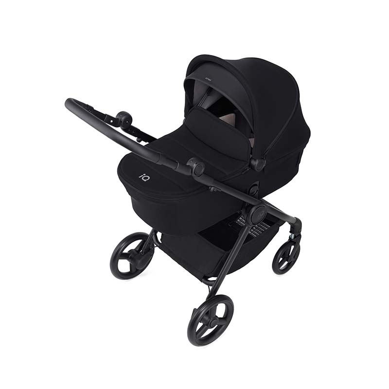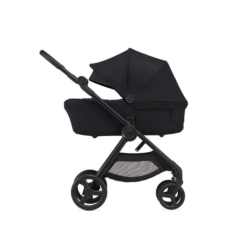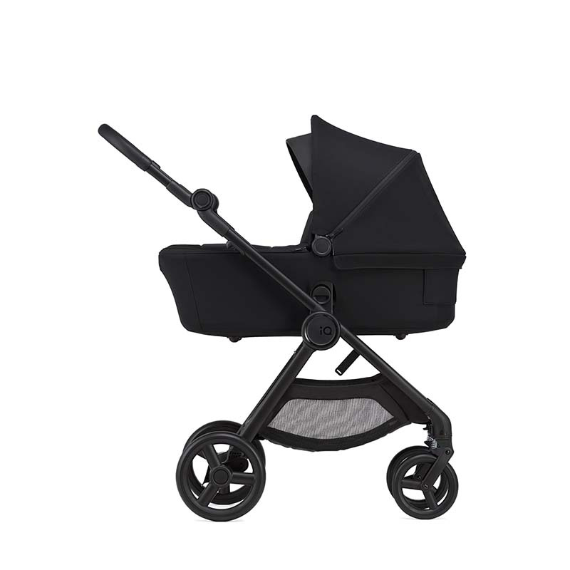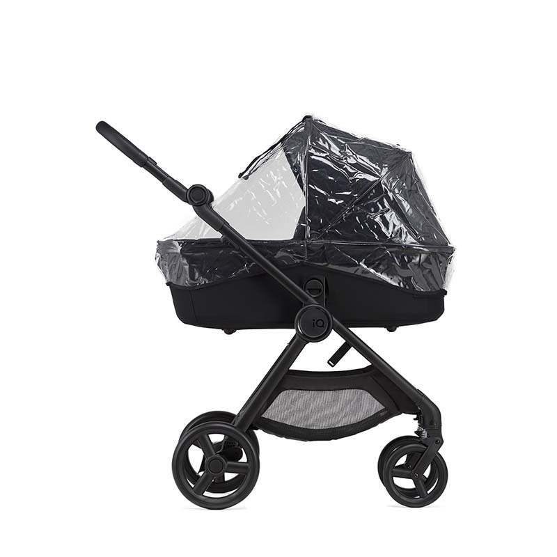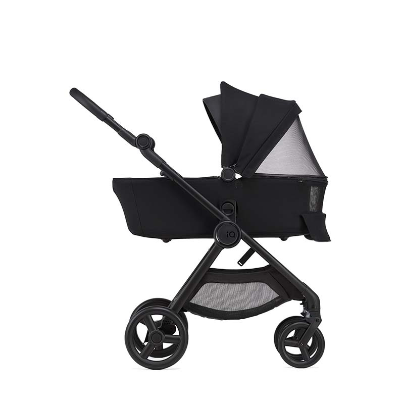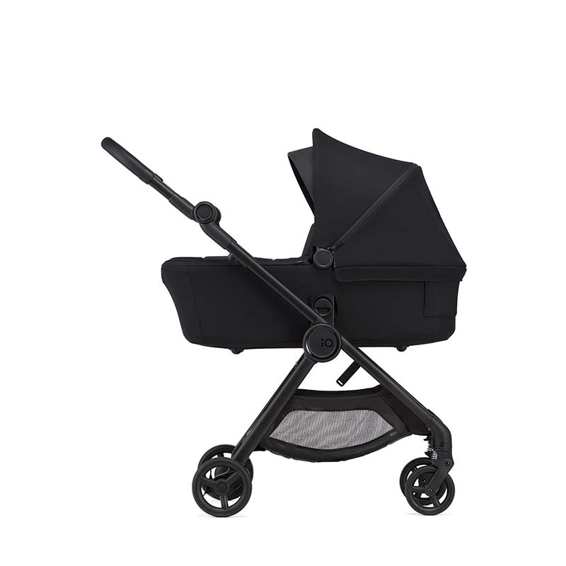 Gondola iQ jest lekka i przestronna (waży jedynie 3,7 kg). W zestawie znajduje się miękki materacyk, zapewniający komfort dziecku już od pierwszych dni życia. Obszerna budka z daszkiem przeciwsłonecznym ma możliwość powiększenia i rozsuwany panel. Możemy go do dodatkowo podwinąć, odkrywając siateczkę. Razem z przednim, siateczkowym panelem w ścianie gondoli zapewnia odpowiednią cyrkulację powietrza w ciepłe dni. Osłonka na nóżki zabezpieczy dziecko przed wiatrem i chłodem.