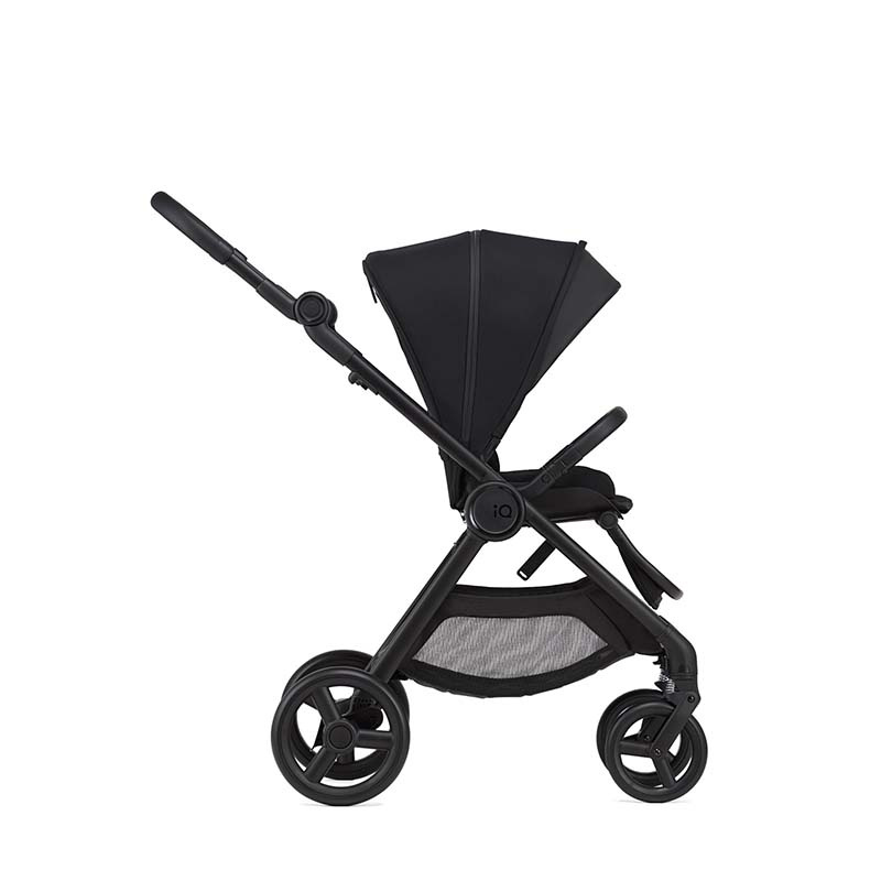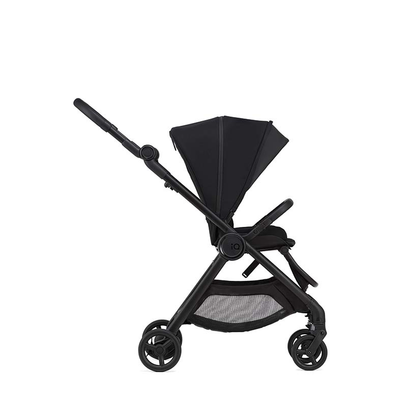 Buggy iQ to innowacyjne rozwiązanie zestawu. Uzyskujemy bardziej mobilny i kompaktowy wózek dla starszaka bez konieczności zakupu oddzielnej spacerówki. Wystarczy około 10 min aby zmienić klasyczną spacerówkę 2w1 w lekki wózek typu buggy. Zamiana kół na mniejsze, zwężenie stelaża oraz zamontowanie siedziska przodem do kierunku jazdy zapewni łatwe przenoszenie i przechowywanie, bez straty dla jakości i płynności jazdy. Siedzisko nadal jest komfortowe, duże i regulowane płynnie do pozycji leżącej. Budka z daszkiem przeciwsłonecznym i rozsuwanym panelem z okienkiem sprawdzi się idealnie. Regulowany podnóżek zapewni komfort i odpoczynek dla nóg dziecka.