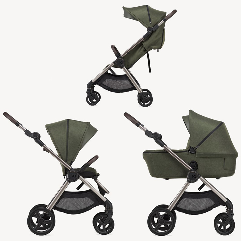 Gondola iQ jest lekka i przestronna (waży jedynie 3,7 kg). W zestawie znajduje się miękki materacyk, zapewniający komfort dziecku już od pierwszych dni życia. Obszerna budka z daszkiem przeciwsłonecznym ma możliwość powiększenia i rozsuwany panel. Możemy go do dodatkowo podwinąć, odkrywając siateczkę. Razem z przednim, siateczkowym panelem w ścianie gondoli zapewnia odpowiednią cyrkulację powietrza w ciepłe dni. Osłonka na nóżki zabezpieczy dziecko przed wiatrem i chłodem. Nieużywaną gondolę można złożyć do bardzo kompaktowych rozmiarów (na płasko i wpół)
