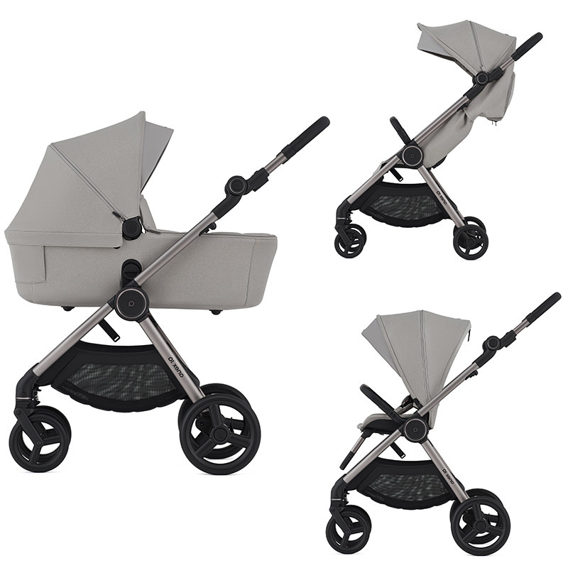 Wózek przeznaczony jest dla dziecka od urodzenia do maksymalnej wagi 22 kg. Innowacyjny, anodowany stelaż w wersji premium jest lekki i kompaktowy, waży jedynie 6 kg. Składa się na płasko przy użyciu jednej ręki, a w wersji spacerowej zestawu 2w1 razem z siedziskiem zamontowanym w obu kierunkach. Nowoczesny system amortyzacji sprawia, że każda podróż, w każdej konfiguracji będzie przyjemna i komfortowa. Dwa zestawy kół, mniejsze i większe pomogą dostosować podwozie do własnych potrzeb i terenu. Przednie koła są skrętne z możliwością zablokowania do jazdy na wprost w położeniu przodem lub tyłem. Brak poprzecznej barierki łączącej tylną oś zapewnia więcej miejsca na na nogi rodzica i przeciwdziała "kopaniu" wózka w trakcie spacerów. Hamulec typu click-click umieszczony jest przy prawym kole. Kosz o pojemności do 5 kg pomieści wszystkie niezbędne akcesoria i zakupy. Rączka pokryta ekoskórą jest regulowana.