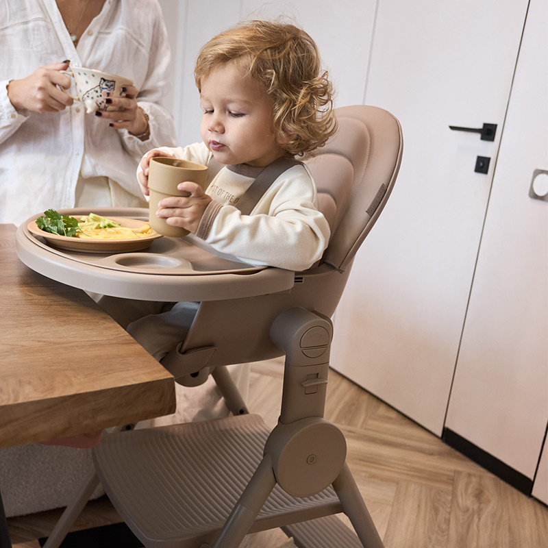 Krzesełko do karmienia przeznaczone jest dla dzieci od 6 miesiąca do 15 kg wagi. Wyposażone jest w 5-punktowe pasy bezpieczeństwa z wygodną w użyciu klamrą które zapewniają bezpieczne podtrzymywanie dziecka. Magnetyczna miękka wkładka ułatwia czyszczenie i łatwo się zdejmuje. Zdejmowana tacka z dodatkową wkładką ułatwia komfortowe podawanie posiłków oraz utrzymanie całości w czystości.