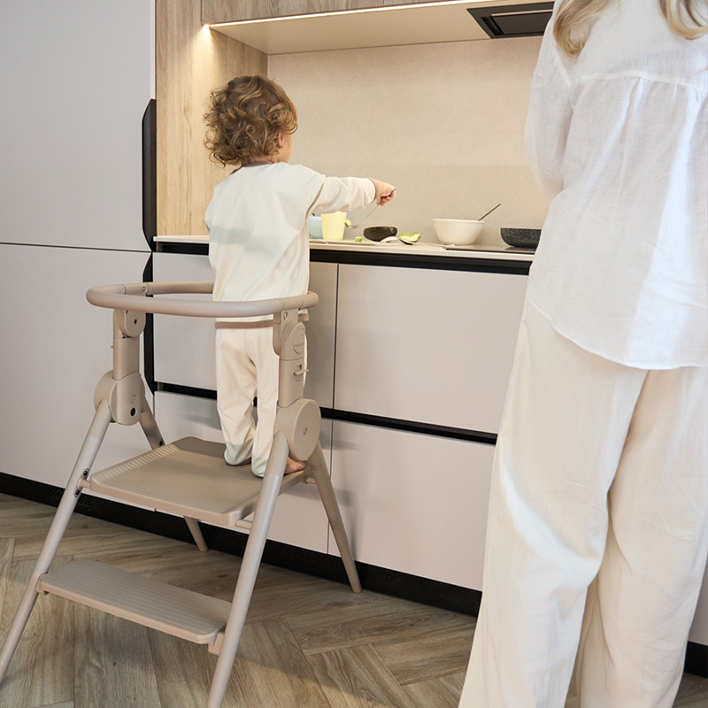 Wieża edukacyjna wyposażona jest w barierkę bezpieczeństwa i zdejmowany zderzak dzięki czemu zapewnia stabilne wsparcie podczas codziennych czynności i zabawy. Wytrzyma maksymalną wagę 30 kg.