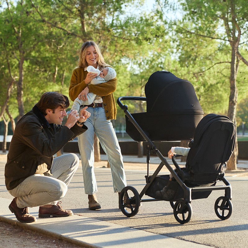 Dwukierunkowe siedzisko jest przestronne i wygodne. Wykonane jest z tkanin z funkcją wodoodporności oraz filtrem UV50+, sprawdzającej się w każdych warunkach. Oparcie regulowane jest w 3 poziomach, do pozycji leżącej, zapewniając najwyższy komfort w trakcie spacerów. W połączeniu z regulowanym w 3 pozycjach podnóżkiem oferuje dużą powierzchnię do odpoczynku. Duża budka z filtrem UPF50+ i daszkiem przeciwsłonecznym jest rozszerzana o dodatkowy panel. W górnej części budki znajduje się siateczkowe okienko wentylacyjne do podejrzenia dziecka. 5-punktowa, regulowana uprząż wewnętrzna z miękkimi nakładkami oraz magnetyczną klamrą ułatwia i przyspiesza bezpieczne zapięcia dziecka w wózku.