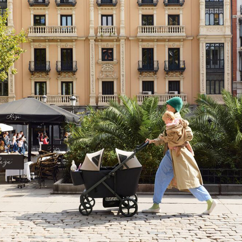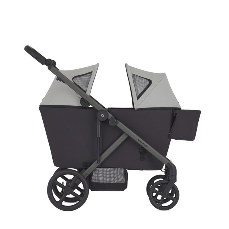 Gdy potrzebujesz więcej przestrzeni, Modu szybko zmienia się w przestronny wózek-wagon dla dwojga, oferując miejsce dla maluchów o wadze do 22 kg każde. Konstrukcja wspiera wygodę i bezpieczeństwo dzieci oraz kontrolę i komfort prowadzenia dla rodzica.