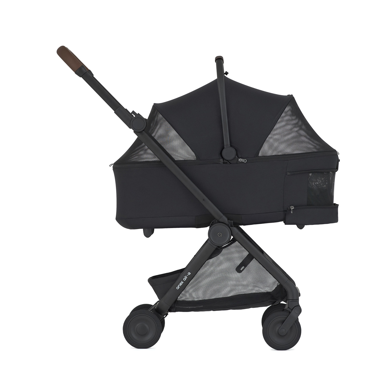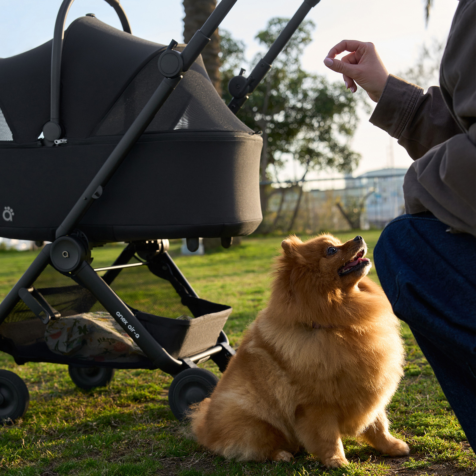Gondola dla zwierząt Anex Air-Q to transporter zaprojektowany do współpracy z wózkiem Air-Q (wózek do kupienia oddzielnie). Zapewnia zwierzęciu bezpieczną i wygodną przestrzeń podczas codziennych wyjść i podróży, a jednocześnie zachowuje kompaktowy charakter całego zestawu. Po złożeniu pozostaje wygodny do przenoszenia i przechowywania, a w konfiguracji z wózkiem spełnia zalecane przez IATA wymiary bagażu podręcznego.