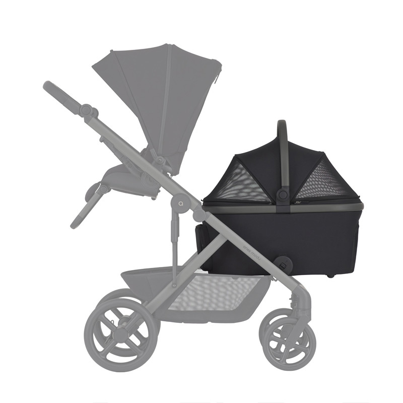 Gondola przeznaczona jest dla pupilów nie przekraczających 9 kg wagi. Jej konstrukcja składa się pionowo do kompaktowych rozmiarów. Trzy panele wentylacyjne pozwalają zachować odpowiednią przewiewność zamkniętej gondoli w gorące dni. Wewnątrz znajdują się dwa wbudowane punkty mocowania obroży lub szelek. Sam dostęp do zwierzaka jest łatwy i szybki dzięki bocznemu okienku bez konieczności otwierania całości. Miękka, umieszczona na spodzie wkładka zapewnia komfort i pomaga w utrzymaniu czystości. Mała kieszonka na suwak jest idealna na drobne akcesoria.
