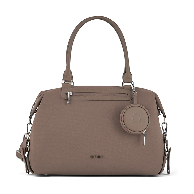 Torba uniwersalna Anex. Doskonałe rozwiązanie na spacer z wózkiem. Idealnie dopasowany do wózków marki Anex, wyróżnia się nowoczesnym designem oraz praktycznymi rozwiązaniami, które ułatwiają organizację wszystkich niezbędnych akcesoriów podczas spacerów z dzieckiem. System uniwersalnych pasków pozwoli na zawieszenie plecaka na niemal każdym wózku. W środku znajdują się pojemne kieszenie na pieluchy, butelkę i inne drobiazgi. Uchwyty z akcentami skórzanymi są praktyczne i miłe w dotyku. Regulowany pasek pozwala na dostosowanie wysokości noszenia torby na ramieniu.
