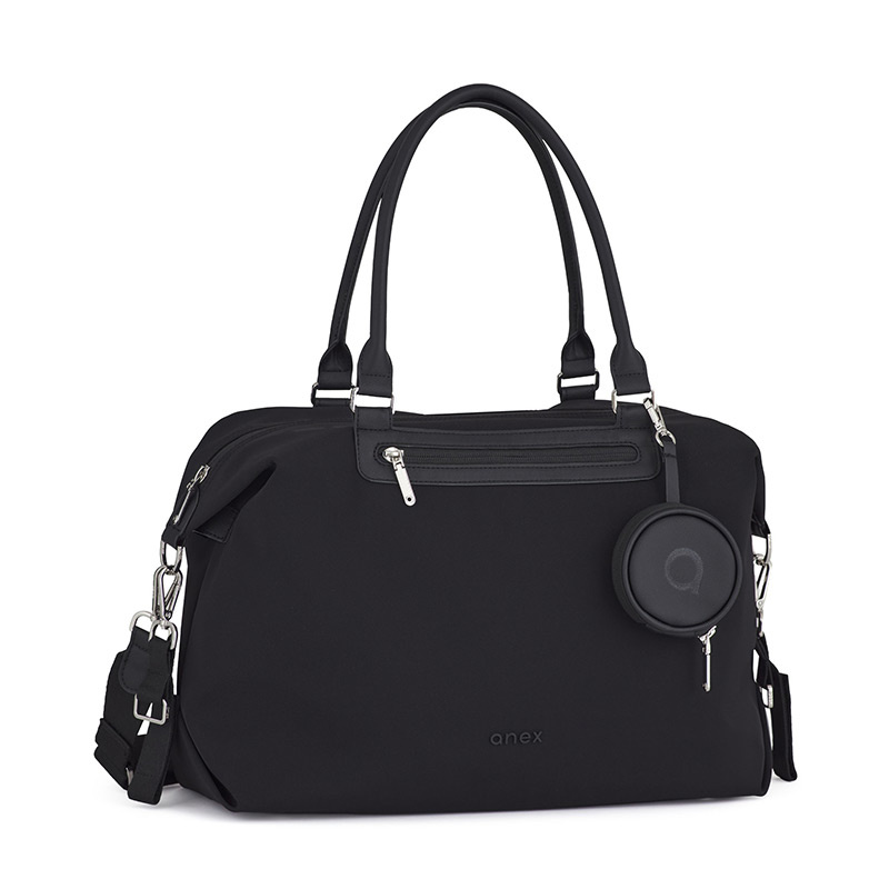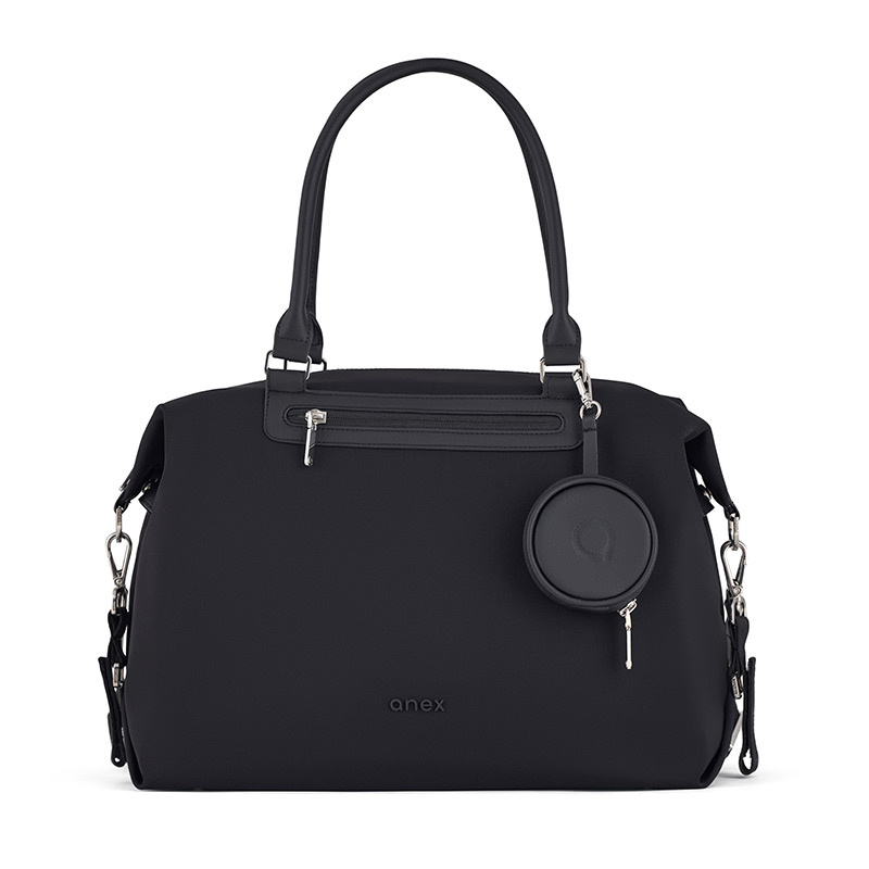 Torba uniwersalna Anex. Doskonałe rozwiązanie na spacer z wózkiem. Idealnie dopasowany do wózków marki Anex, wyróżnia się nowoczesnym designem oraz praktycznymi rozwiązaniami, które ułatwiają organizację wszystkich niezbędnych akcesoriów podczas spacerów z dzieckiem. System uniwersalnych pasków pozwoli na zawieszenie plecaka na niemal każdym wózku. W środku znajdują się pojemne kieszenie na pieluchy, butelkę i inne drobiazgi. Uchwyty z akcentami skórzanymi są praktyczne i miłe w dotyku. Regulowany pasek pozwala na dostosowanie wysokości noszenia torby na ramieniu.
