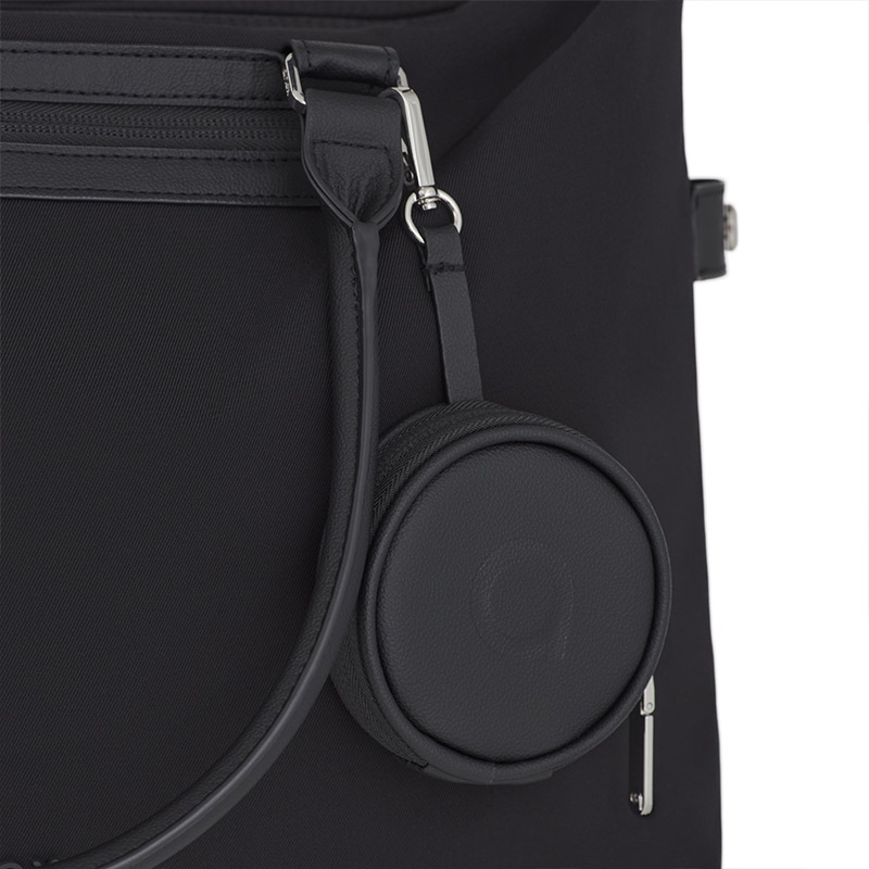 W zestawie z torbą znajduje się mata do przewijania z cienką warstwą pianki i podszewką oraz portmonetka na drobiazgi.