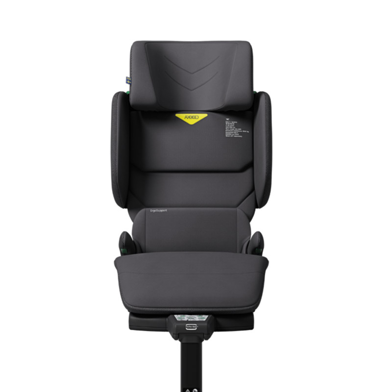 Axkid Up, najbardziej zaawansowany fotelik dla starszaka od szwedzkiego producenta. Bezpieczne rozwiązanie z homologacją i-Size. Przeznaczony jest dla dziecka od 100 cm do 150 cm wzrostu i maksymalnie 50 kg wagi dziecka. Montowany jest przodem do kierunku jazdy za pomocą systemu isofix, nogi podporowej i 3-punktowego pasa samochodowego lub samym pasem, gdy zajdzie taka konieczność. W połączeniu z solidną stalową ramą, montaż gwarantuje dodatkową stabilność. Axid Up oferuje możliwość umieszczenia 3 fotelików w jednej linii na tylnej kanapie. Dziecko zapinane jest pasem, a dzięki innowacyjnemu, podnoszonemu siedzisku zawsze będzie przebiegał on prawidłowo, zapewniając komfort i bezpieczeństwo. Opatentowane siedzisko umożliwia korzystanie z systemów bezpieczeństwa w samochodzie, takich jak poduszki boczne czy napinacze pasów bez szkody dla dziecka.
