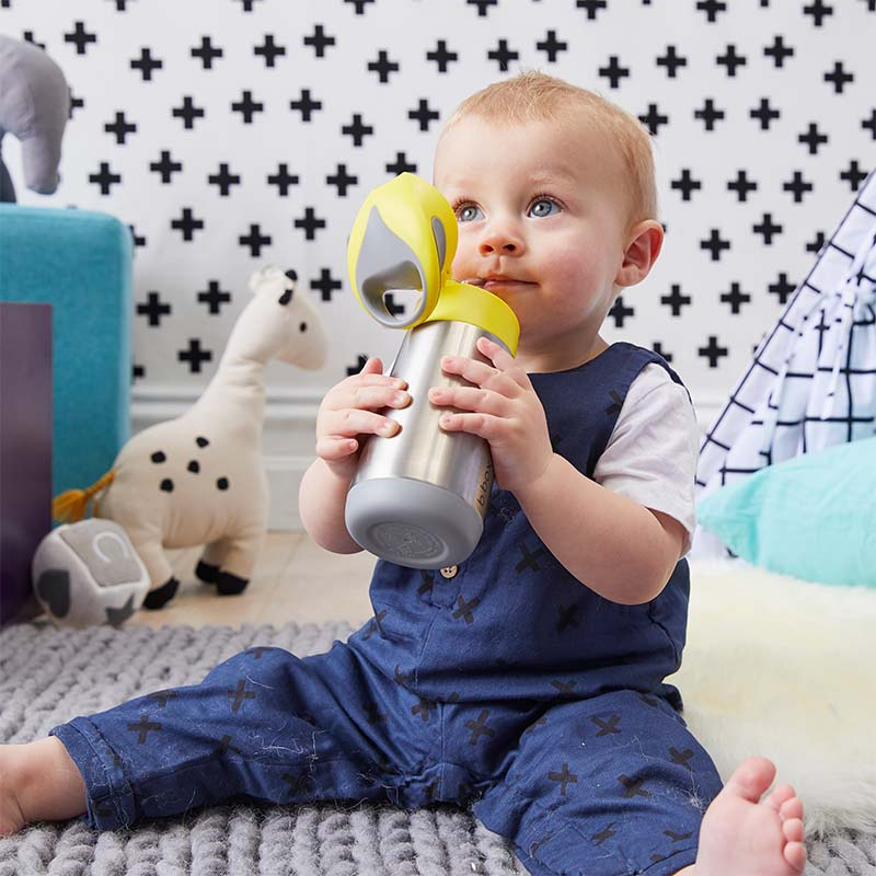 Termobutelka ze słomką b.box o pojemności 350 ml. Dzięki podwójnym ściankom ze stali nierdzewnej utrzymuje temperaturę do 8 godzin. Uchwyt do przenoszenia butelki termicznej w komplecie. Specjalnie zaprojektowana góra pozwala dzieciom samodzielnie otwierać butelkę.