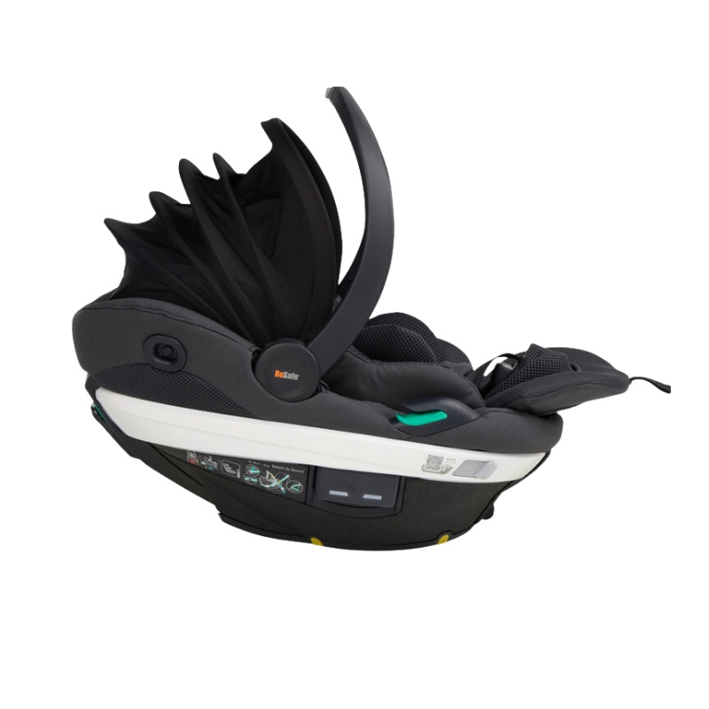 Zestaw fotelik samochodowy BeSafe Go Beyond z bazą Beyond. Lekki i funkcjonalny model dla niemowlaka od 40 do 87 cm wzrostu i maksymalnej wagi 13 kg w homologacji i-Size. Montowany jest tyłem do kierunku jazdy za pomocą pasów samochodowych lub systemu isofix, na bazie Beyond (w zestawie), która posłuży do zamontowania kolejnego fotelika. Model Go Beyond posiada rewolucyjną funkcję Active Lay Flat (aktywna wyłącznie w połączeniu z bazą Beyond), dzięki której zapewnia komfortową, półleżącą pozycję w samochodzie. W razie wypadku fotelik ustawi się automatycznie do pozycji pionowej, która jest najbezpieczniejsza podczas kolizji. 5-punktowe pasy wewnętrzne z miękkimi nakładkami gwarantują prawidłowe ułożenie dziecka w foteliku w bezpiecznej pozycji. Rozpięte pasy nie wiszą dzięki bocznym magnesom, dzięki czemu wkładanie i zapinanie pasów jest prostsze i wygodniejsze. Ergonomiczna rączka ułatwia przenoszenie fotelika z samochodu za pomocą jednej ręki a w przypadku zamontowanego fotelika chroni dziecko przed uderzeniem o wnętrze samochodu.