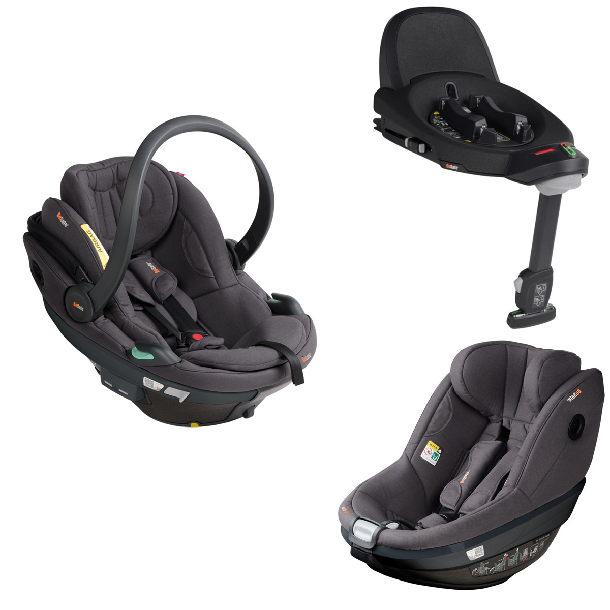 - Zestaw BeSafe Beyond: Go Beyond 2 + Beyond 2 360 + Beyond Base – UN R129. Jedna baza ISOFIX z rotacją dla fotelików 40–87 cm (do 13 kg) i 61–125 cm (do 22 kg); poziomica ULT i regulacja przestrzeni na nogi.