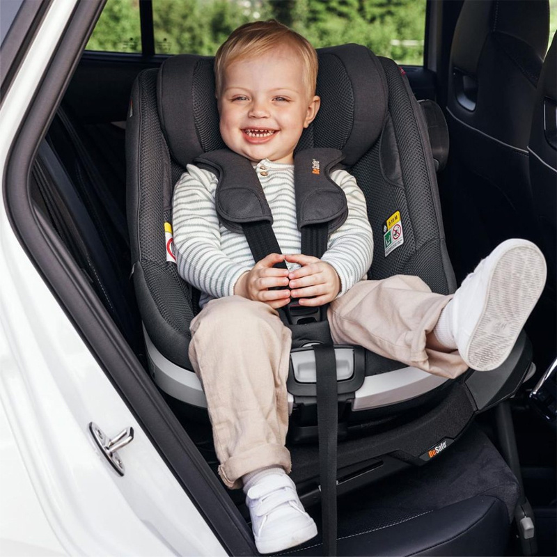 BeSafe Beyond 360, bezpieczny innowacyjny fotelik dla malucha. Przeznaczony jest dla dziecka od 61 cm do 125 cm wzrostu i maksymalnie do 22 kg wagi, homologowany zgodnie z najnowsza normą bezpieczeństwa i-Size. Montowany jest wyłącznie na obrotowej bazie Beyond (do kupienia oddzielnie) za pomocą łączy isofix i nogi wspierającej. Montaż jest szybki, intuicyjny i polega na jednym kliknięciu. Dziecko może być przewożone tyłem do kierunku jazdy przez cały czas lub przodem od 88 cm do 125 cm wzrostu.