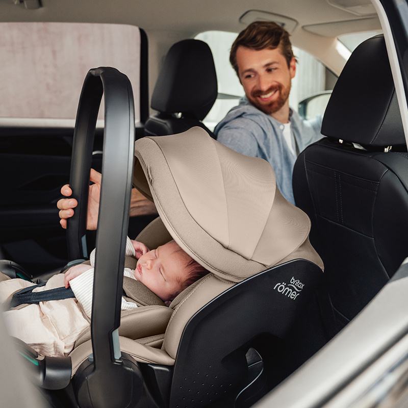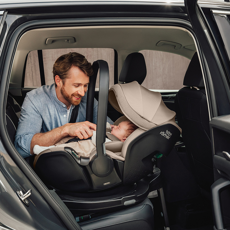 Fotelik samochodowy Britax Romer Baby-Safe Pro. Innowacyjny i bardzo lekki model dla niemowlaka do 85 cm wzrostu (maksymalnie 13 kg wagi). Fotelik mocowany jest tyłem do kierunku jazdy za pomocą pasów samochodowych lub na bazie isofix (do kupienia oddzielnie). Baby-Safe Pro waży jedynie 3,9 kg, dzięki czemu jest łatwy w przenoszeniu, również z dzieckiem w środku. Zastosowanie funkcji Ergo Recline zapewnia optymalny komfort dla dziecka. Pozwala ona na bezpieczne i wygodne wypłaszczenie pozycji w foteliku, zarówno w samochodzie, jak i poza nim. Rozłożenie siedziska do płaskiej pozycji wspomaga zdrowy rozwój kręgosłupa dziecka i zapewnia drożność dróg oddechowych. Fotelik posiada dodatkowe skrzydełka boczne, które pochłaniają część energii w trakcie zderzenia. Baby-Safe Pro rośnie wraz z dzieckiem, zagłówek regulowany jest razem z 3-punktową uprzężą wewnętrzną w zależności od jego wzrostu. Rozkładany daszek przeciwsłoneczny z filtrem UPF50+ chroni dziecko przed słońcem i wiatrem.