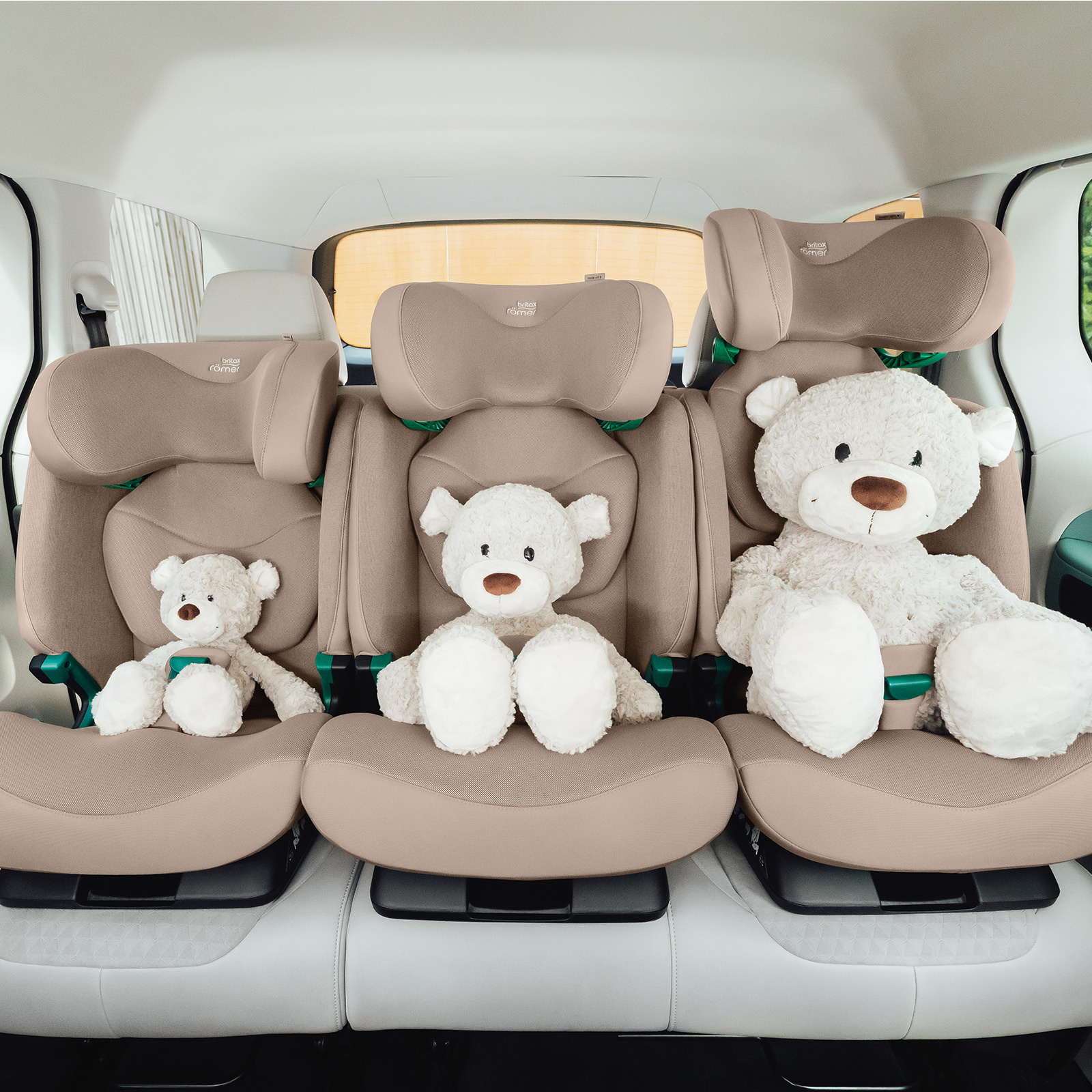 • Smukła szerokość 44 cm ułatwia ustawienie trzech fotelików w jednym rzędzie.