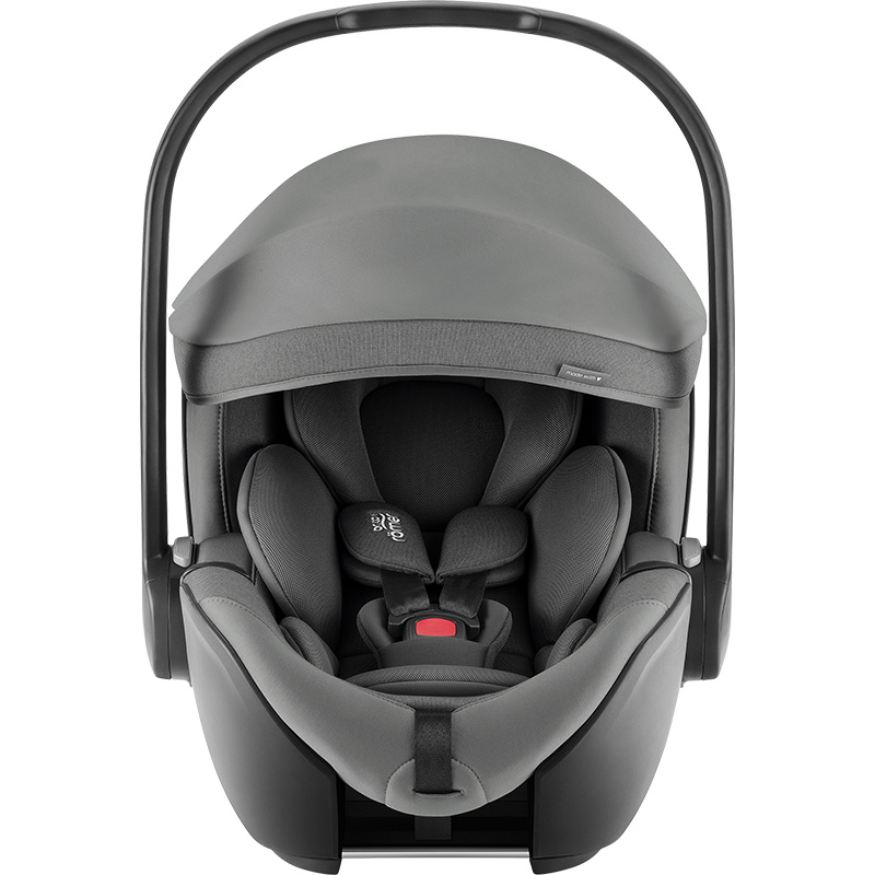 Fotelik samochodowy Britax Romer Baby-Safe Pro. Innowacyjny i bardzo lekki model dla niemowlaka do 85 cm wzrostu (maksymalnie 13 kg wagi). Fotelik mocowany jest tyłem do kierunku jazdy za pomocą pasów samochodowych lub na bazie isofix (do kupienia oddzielnie). Baby-Safe Pro waży jedynie 3,9 kg, dzięki czemu jest łatwy w przenoszeniu, również z dzieckiem w środku. Zastosowanie funkcji Ergo Recline zapewnia optymalny komfort dla dziecka. Pozwala ona na bezpieczne i wygodne wypłaszczenie pozycji w foteliku, zarówno w samochodzie, jak i poza nim. Rozłożenie siedziska do płaskiej pozycji wspomaga zdrowy rozwój kręgosłupa dziecka i zapewnia drożność dróg oddechowych. Fotelik posiada dodatkowe skrzydełka boczne, które pochłaniają część energii w trakcie zderzenia. Baby-Safe Pro rośnie wraz z dzieckiem, zagłówek regulowany jest razem z 3-punktową uprzężą wewnętrzną w zależności od jego wzrostu. Rozkładany daszek przeciwsłoneczny z filtrem UPF50+ chroni dziecko przed słońcem i wiatrem.