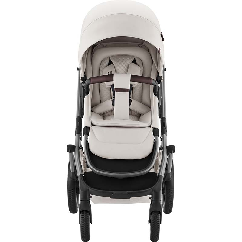Gondola do Wózka Britax Romer Smile 5Z. Z myślą o komforcie dziecka została powiększona w stosunku do poprzedniczki. Montaż został uproszczony za pomocą przycisków pamięci oraz wskaźników prawidłowego montażu. Gondola 5Z została wyposażona w duży daszek UPF50+ i dodatkowy panel przeciwsłoneczny. Dodatkowe panoramiczne panele wentylacyjne zapewnią dziecku cyrkulację powietrza oraz możliwość obserwowania otoczenia. Aby nie zakłócać snu dziecka, panele wentylacyjne są magnetycznie zamykane, a osłonka gondoli posiada cichy zamek błyskawiczny.
