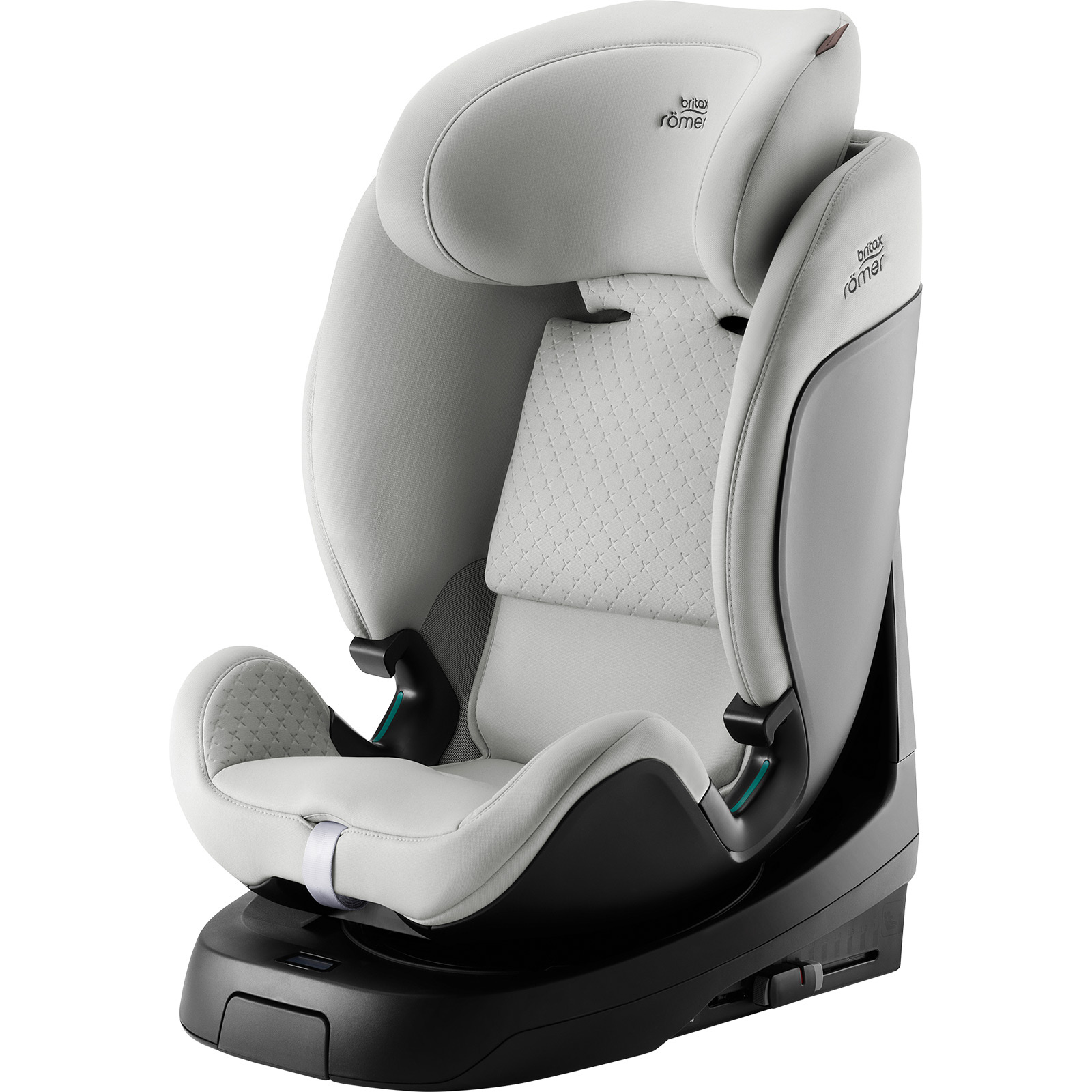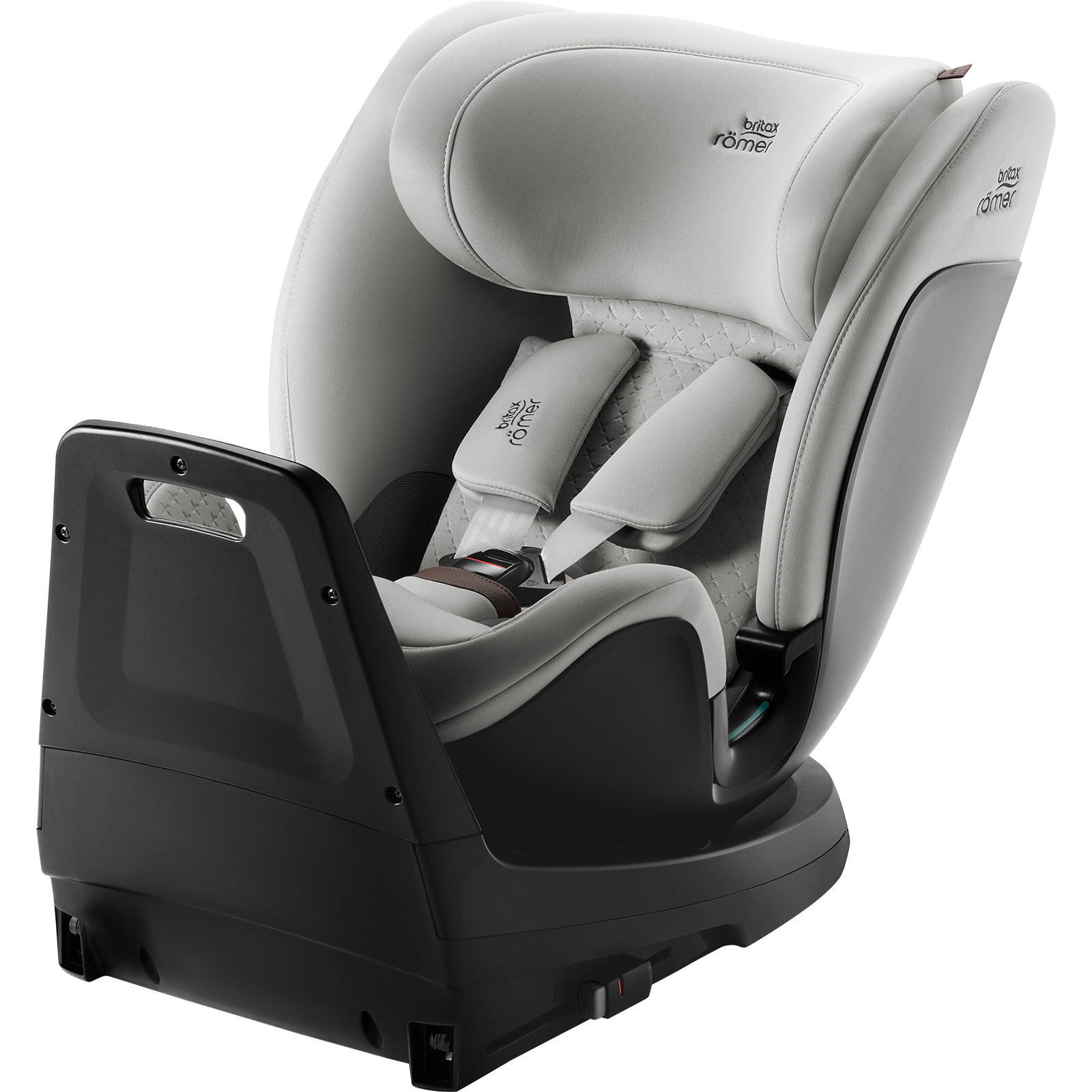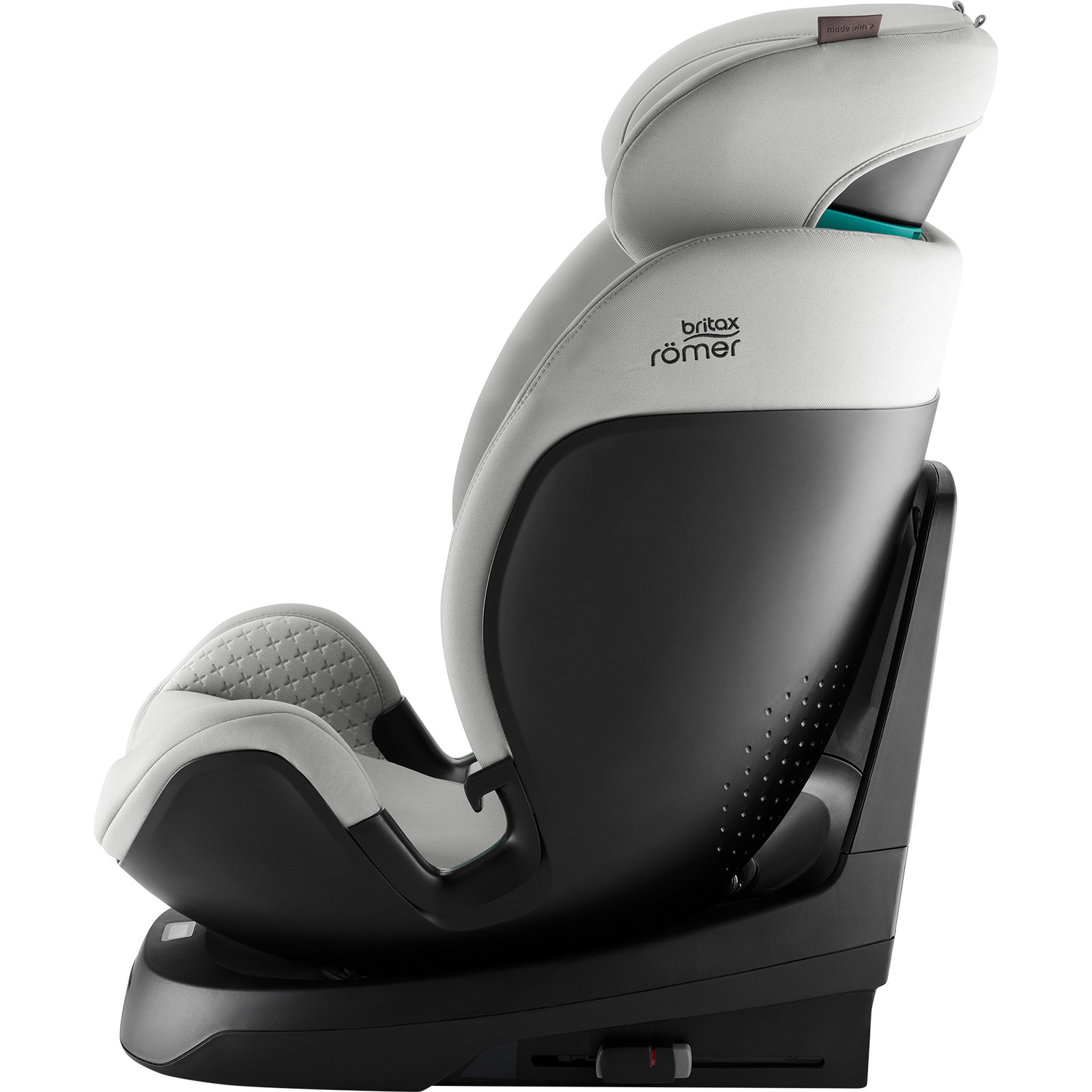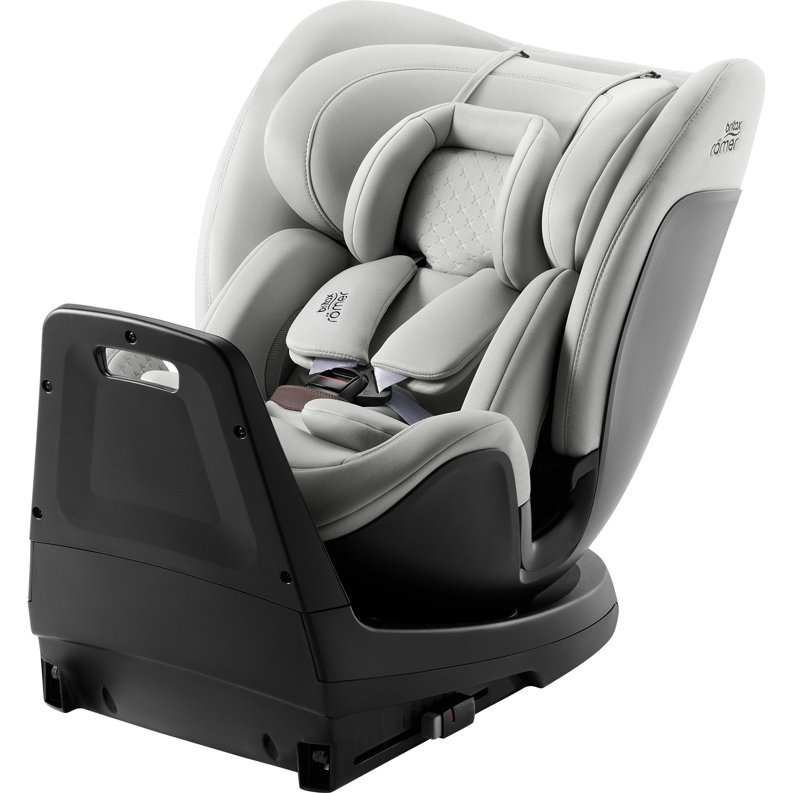 - Fotelik Britax Römer SWIVEL-GROW MAX Air 40–125 cm z obrotowym siedziskiem, montażem ISOFIX i nogą podpierającą do 105 cm oraz wentylatorem z daszkiem. Dla starszych dzieci montaż przodem z 3-punktowym pasem samochodowym i opcjonalnym ISOFIX.