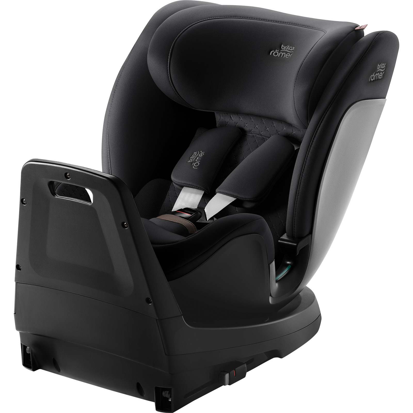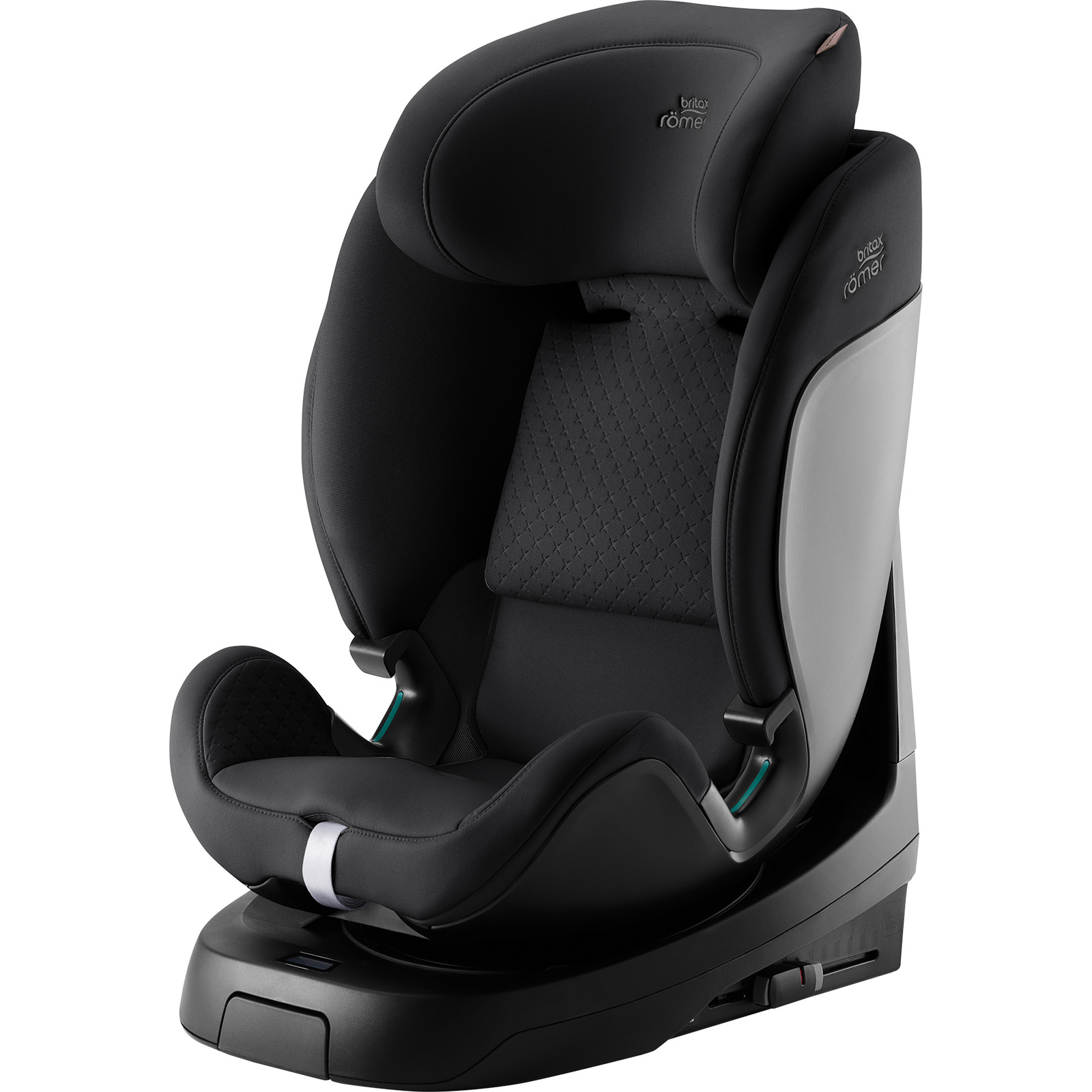 - Fotelik Britax Römer SWIVEL-GROW MAX Air 40–125 cm z obrotowym siedziskiem, montażem ISOFIX i nogą podpierającą do 105 cm oraz wentylatorem z daszkiem. Dla starszych dzieci montaż przodem z 3-punktowym pasem samochodowym i opcjonalnym ISOFIX.