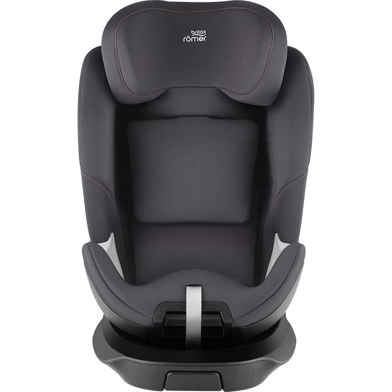 Britax Romer Swivel, fotelik samochodowy z homologacją i-Size. Przeznaczony jest dla dzieci od urodzenia do około 7 lat (40 - 125 cm wzrostu). Montowany jest w samochodzie za pomocą systemu isofix i nogi stabilizującej. Dzięki obrotowej konstrukcji ułatwia rodzicom wkładanie i wyjmowanie dziecka z samochodu. Fotel Swivel umożliwia przewożenia tyłem do kierunku od 40 cm do 105 cm wzrostu dziecka. 5-punktowa uprząż wewnętrzna zapewnia bezpieczeństwo i rozkłada się uderzenia równomiernie na skorupę fotela. Dodatkowo posiada miękkie nakładki co znacznie poprawia ułożenie pasów i komfort dziecka. Po osiągnięciu 76 cm ( min. 15 miesięcy życia) wzrostu może być odwrócony przodem do kierunku jazdy w pasach wewnętrznych do 105 cm. Następnie noga stabilizacyjna i pasy wewnętrzne są chowane i dziecko przepinane jest 3-punktowym pasem samochodowym, a sam fotel zamontowany w systemie isofix.