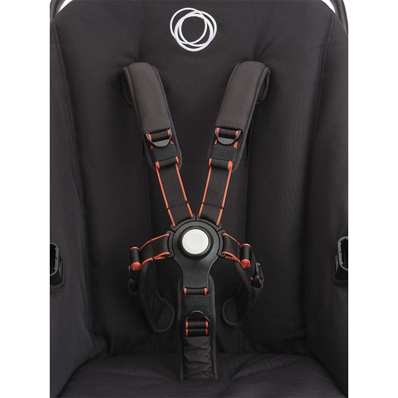 Bugaboo Fox Cub ma duże, dwukierunkowe, kubełkowe siedzisko regulowane w 3 pozycjach. Oparcie ma 56 cm długości i wystarczy do komfortowego używania przez cały czas. Pasy wewnętrzne są 5-punktowe, regulowane płynnie i odstają, co ułatwia wsiadanie i wysiadanie z wózka. Klamra pasa działa niezależnie, każdy pas jest wpinany oddzielnie. Obrotowy pałąk pokryty ekoskórą ułatwia wchodzenie i wyjmowanie dziecka.