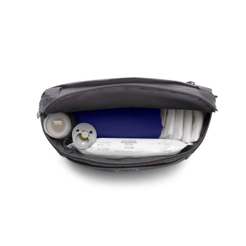Bugaboo uniwersalny organizer. Dzięki zastosowaniu wodoodpornych materiałów sprawdzi się w każdych warunkach.Organizer można zamontować na rączce wózka lub za siedziskiem spacerowym dzięki wytrzymałym rzepom. Szereg kieszonek i przegródek pomieści wszystkie niezbędne drobiazgi. Ma możliwość przekształcenia w stylową mini torebkę do ręki. Maksymalne obciążenie organizera to 1 kg.