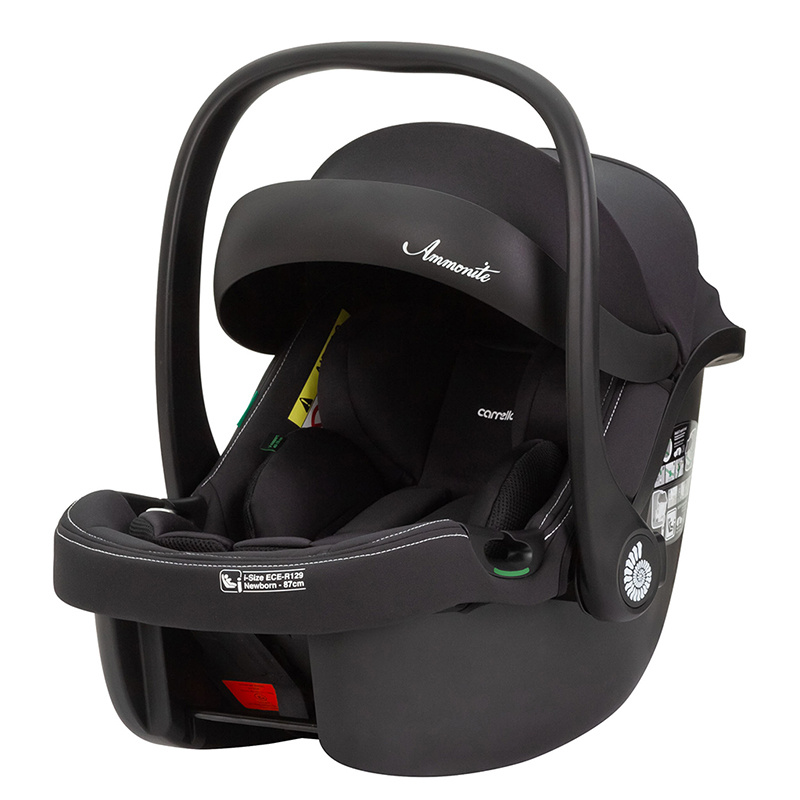 Zestaw fotelik Carrello Ammonite z bazą isofix. Przeznaczony jest dla noworodków i dzieci do maksymalnej wagi 13 kg i 87cm wzrostu. Montowany jest tyłem do kierunku jazdy za pomocą 3-punktowego pasa samochodowego lub na bazie isofix Ammonite. Jego lekka konstrukcja ułatwia przenoszenie fotela z dzieckiem poza samochód lub na stelaż wózka. Regulowana rączka ułatwia noszenie fotelika oraz jest dodatkowym zabezpieczeniem w samochodzie.