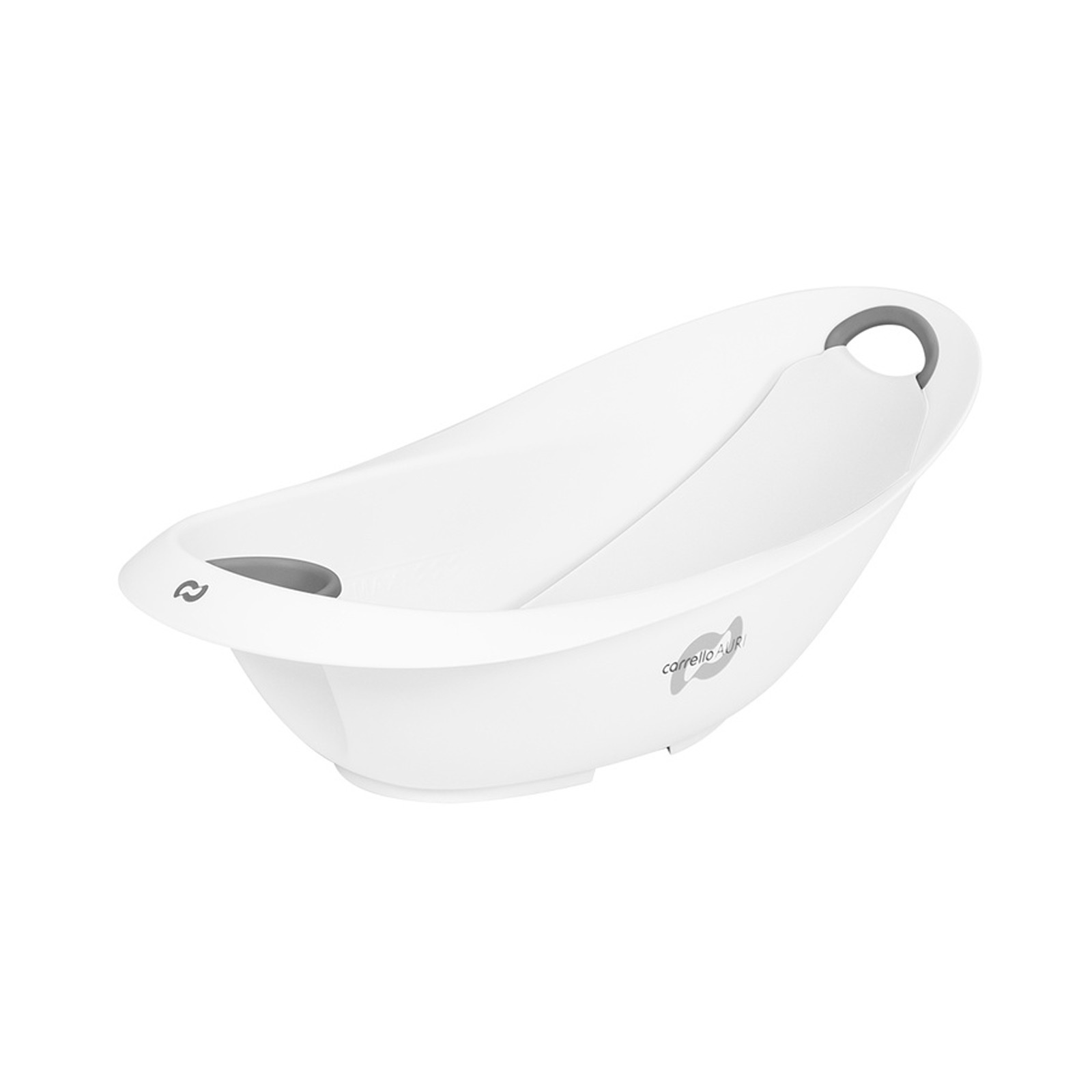 - Wanienka dziecięca Carrello Auri z leżaczkiem od pierwszych dni życia. Ma pojemność 26 l, odpływ z silikonowym korkiem, wskaźnik poziomu wody i mydelniczkę z wyjmowaną silikonową wkładką.