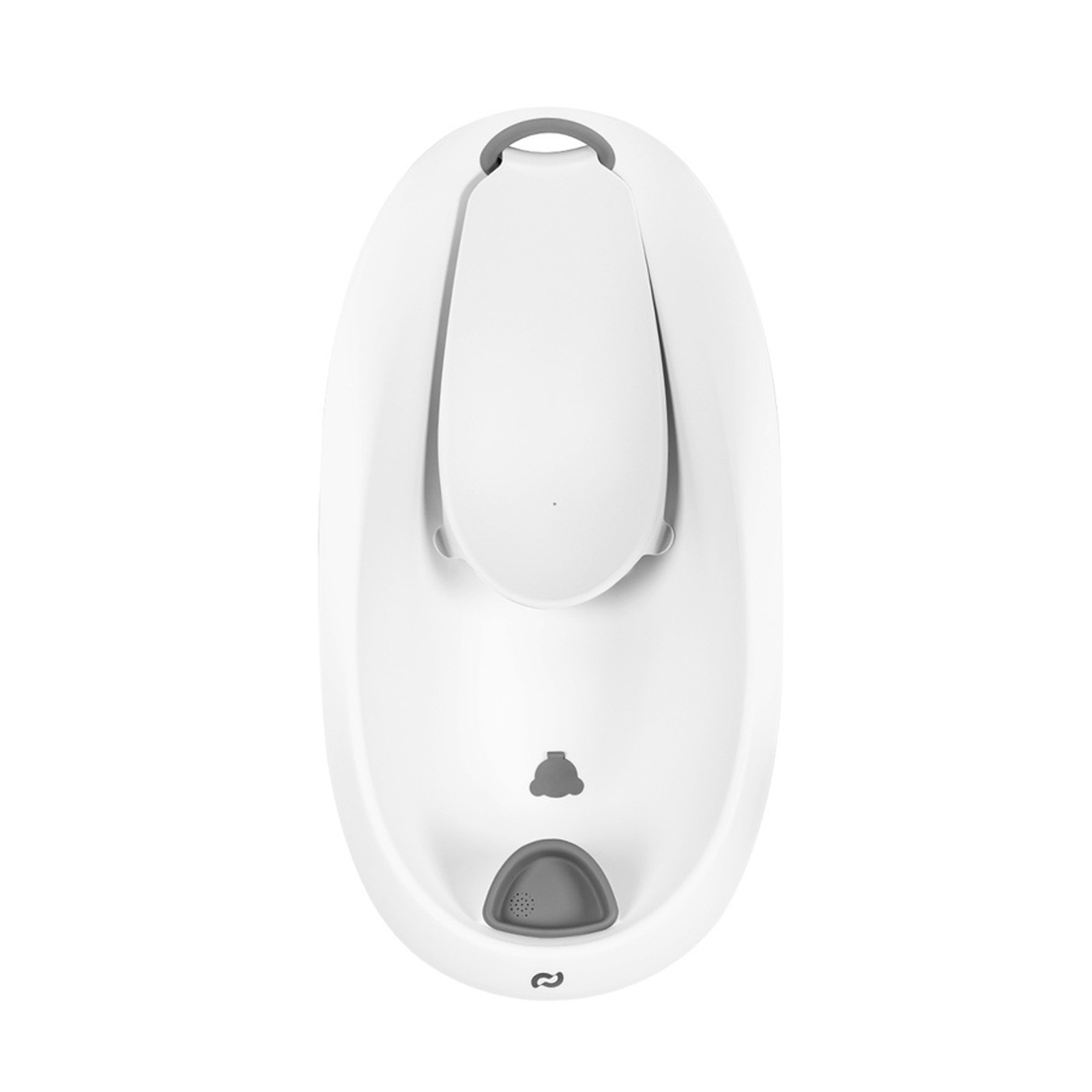 Wanienkę wykonano z gładkiego i wytrzymałego plastiku z zaokrąglonymi krawędziami. Można ją przenosić razem z wodą. Na wewnętrznej ściance znajduje się wskaźnik maksymalnego poziomu wody, a odpływ z silikonowym korkiem pozwala wygodniej opróżnić wanienkę po zakończonej kąpieli.