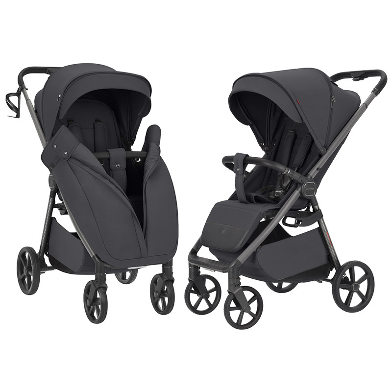 Wózek spacerowy Carrello Bravo Carbon to nowa odsłona popularnego modelu z udoskonalonym designem i nową kolorystyką. Model zachęca wyrazistymi kombinacjami materiałów. Wytrzymały, ultralekki karbon z charakterystycznym wzorem oraz matowe czarne, lśniące lub głębokie szare wykończenie aluminiowej ramy. Wózek Carrello Bravo Carbon składa się w prosty sposób na płasko, a po złożeniu stoi bez podparcia. Wygodny uchwyt do przenoszenia pozwala na bezproblemowe transportowanie. Centralny hamulec umieszczony jest na tylnej osi i został skonstruowany tak, aby był wygodny w obsłudze i nie niszczył butów. Wózek doskonale poradzi sobie na trudniejszym terenie dzięki dobrej amortyzacji i dużym bezobsługowym piankowym kołom. Przednie koła są skrętne z możliwością zablokowania do jazdy na wprost. Nowością jest lampka Led umieszczona na przedzie z trzema trybami świecenia: mocnym, średnim lub pulsacyjnym. Rączka obita ekoskórą jest regulowana teleskopowo.