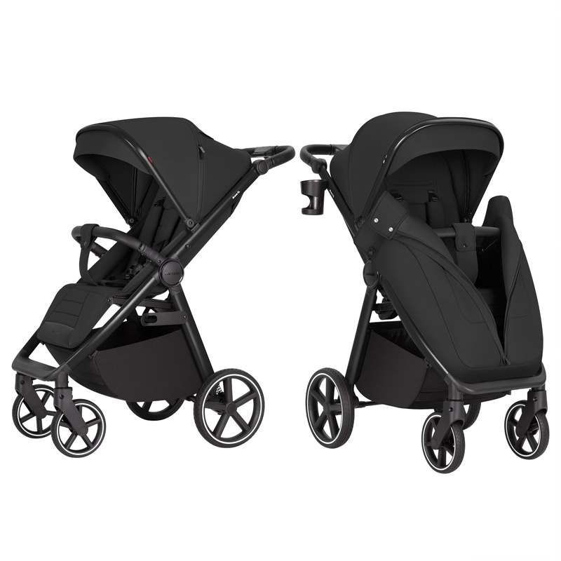 Siedzisko jest obszerne i wygodne, wykonane z dobrej jakości materiału. Oparcie reguluje się w 3 pozycjach, rozkłada się na płasko do pozycji leżącej. Duża budka ma możliwość dodatkowego powiększenia za pomocą panelu ukrytego pod suwakiem. Z tyłu budki znajduje się okienko wentylacyjne, przez które można zajrzeć do dziecka. Podnóżek jest regulowany jest w 3 pozycjach. Pięciopunktowe pasy mają regulowaną wysokość za pomocą pasków. Pałąk obity został ekoskórą, którą łatwo utrzymać w czystości. Pojemny kosz ma magnetyczne zamknięcie ułatwiające dostęp.