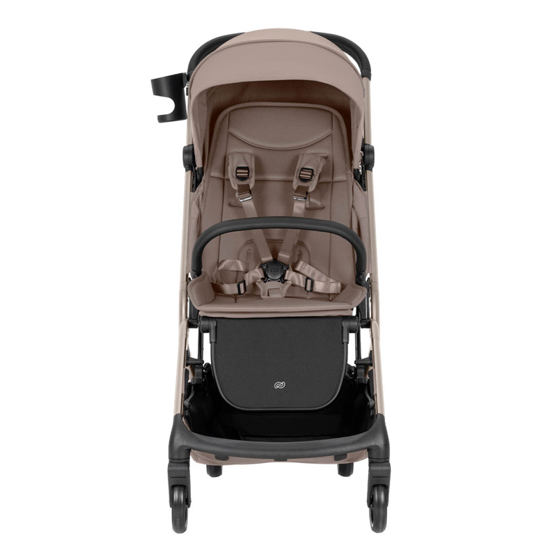 Siedzisko jest obszerne i wygodne, wykonane z dobrej jakości materiału. Oparcie regulowane jest płynnie i bezgłośnie, rozkłada się na płasko do pozycji leżącej. Duża budka ma możliwość dodatkowego powiększenia za pomocą panelu ukrytego pod suwakiem. Na szczycie budki znajduje się okienko wentylacyjne, przez które można zajrzeć do dziecka. Dla większego komfortu dziecka podczas odpoczynku, podnóżek również jest regulowany. Pięciopunktowe pasy z miękkimi nakładkami zapinane są magnetyczną klamrą. Regulowana wysokość uprzęży pozwala dostosować ją do aktualnego wzrostu dziecka. Pałąk obity został ekoskórą, którą łatwo utrzymać w czystości.