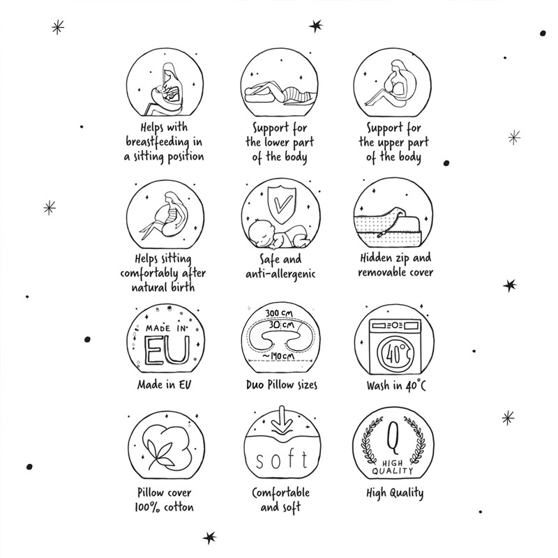 Dzięki swojej długości i elastyczności Cebuszka Duo doskonale sprawdzi się zarówno podczas snu na boku, jak i w trakcie karmienia, oferując maksymalną wygodę i bezpieczeństwo.