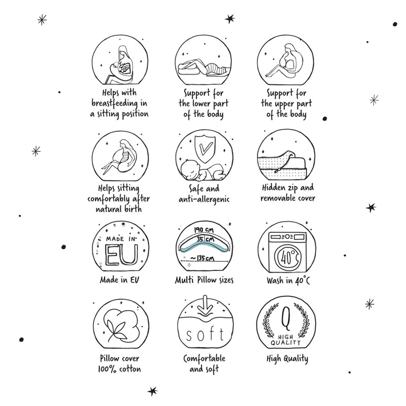 - Wielofunkcyjna poduszka zaprojektowana z myślą o kobietach w ciąży.