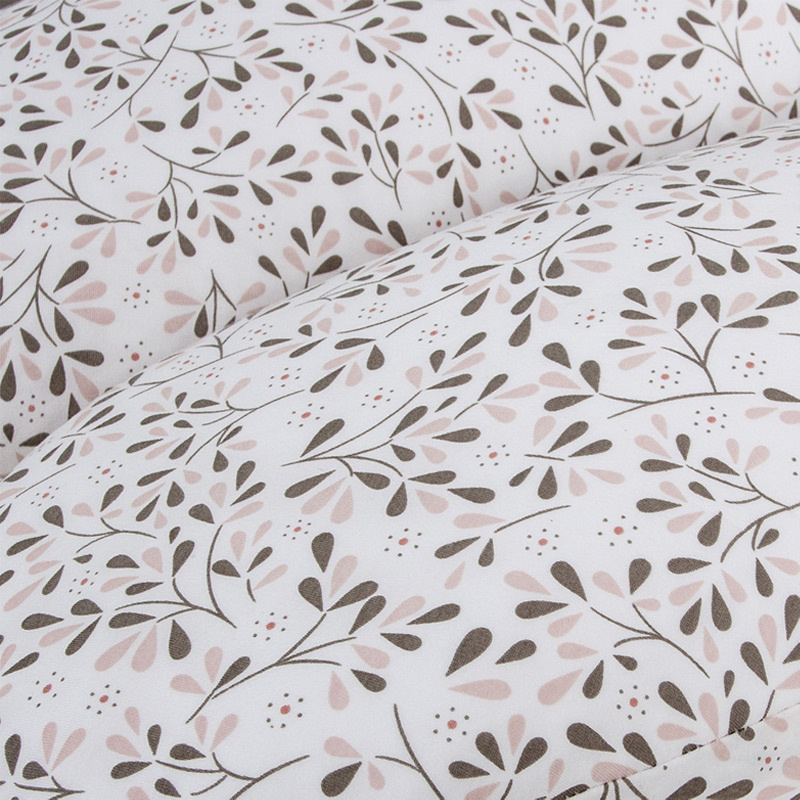 Poduszka wyposażona jest w odpinany pokrowiec wykonany z miękkiej w dotyku dzianiny bawełnianej oraz wypełnienie z poliestrowych kulek, zapewniających komfort użytkowania. Produkt jest łatwy w pielęgnacji i posiada Certyfikat OEKO-TEX® STANDARD 100, potwierdzający jego bezpieczeństwo.