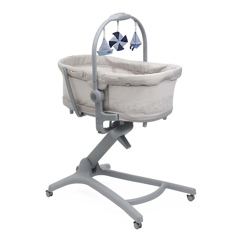 Mobilne łóżeczko sprawdzi się idealnie dla noworodków i dzieci do 6 miesiąca życia. Możliwość płynnej regulacji wysokości stelaża daje rodzicom dużą swobodę w dostosowaniu się do ich wzrostu. 4 kółka zapewniają dobrą mobilność całego urządzenia. Kształt samej "gondoli" sprawdzi się idealnie do pierwszych drzemek w ciągu dnia. Specjalny pałąk z zawieszonymi zabawkami zajmie uwagę dziecka. Dodatkowo na szczycie znajduje się panel kontrolny z lampką i melodyjkami.