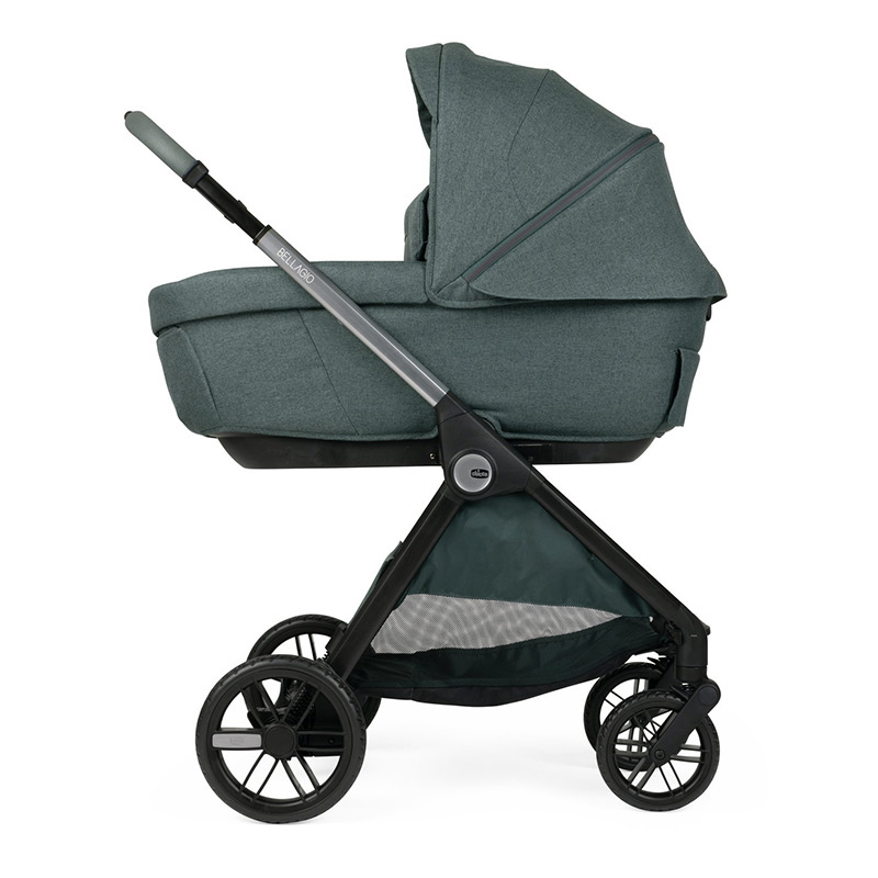 Chicco Bellagio, elegancki i kompaktowy zestaw 3w1 z przekładanym siedziskiem, gondolą Gran Comfort i fotelikiem Kory Plus. Rozwiązanie, które łączy klasyczny design z nowoczesnymi technologiami, zapewniając komfort i bezpieczeństwo malucha już od pierwszych dni życia. Przeznaczony jest dla dzieci od urodzenia do maksymalnej wagi 22 kg. Stelaż ma funkcję autofoldingu uruchamianego jednym ruchem, do pozycji wolnostojącej. Funkcję samo-składania można uruchomić zarówno z wpiętym siedziskiem spacerowym jak i na samym stelażu. Waga 9,7 kg oraz małe wymiary po złożeniu sprawią, że jest łatwy w transportowaniu i zmieści się w większości bagażników samochodowych. Piankowe koła są bezobsługowe i odporne na przebicia, wyposażone w amortyzatory i łożyska kulkowe. Przednie są skrętne z możliwością zablokowania do jazdy na wprost. Znacznie ułatwia to manewrowanie i poprawia zwrotność wózka. Centralny hamulec znajduje się na tylnej osi, działa na zasadzie jednego naciśnięcia i nie niszczy obuwia. Koszyk na zakupy zmieści wszystkie niezbędne na spacerze akcesoria, a jego tylna cześć jest zamykana na magnes. Rączka jest regulowana teleskopowo, co pozwoli dostosować ją wysokość do wzrostu opiekuna.