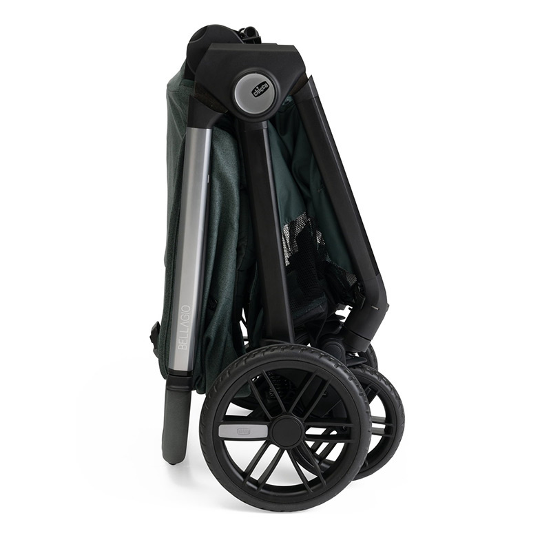 Chicco Bellagio, elegancki i kompaktowy wózek z przekładanym siedziskiem i funkcją modułową. Rozwiązanie, które łączy klasyczny design z nowoczesnymi technologiami, zapewniając komfort i bezpieczeństwo malucha już od pierwszych dni życia. Przeznaczony jest dla dzieci od urodzenia do maksymalnej wagi 22 kg. Stelaż ma funkcję autofoldingu uruchamianego jednym ruchem, do pozycji wolnostojącej. Funkcję samo-składania można uruchomić zarówno z wpiętym siedziskiem spacerowym jak i na samym stelażu. Waga 9,7 kg oraz małe wymiary po złożeniu sprawią, że jest łatwy w transportowaniu i zmieści się w większości bagażników samochodowych. Piankowe koła są bezobsługowe i odporne na przebicia, wyposażone w amortyzatory i łożyska kulkowe. Przednie są skrętne z możliwością zablokowania do jazdy na wprost. Znacznie ułatwia to manewrowanie i poprawia zwrotność wózka. Centralny hamulec znajduje się na tylnej osi, działa na zasadzie jednego naciśnięcia i nie niszczy obuwia. Koszyk na zakupy zmieści wszystkie niezbędne na spacerze akcesoria, a jego tylna cześć jest zamykana na magnes. Rączka jest regulowana teleskopowo, co pozwoli dostosować ją wysokość do wzrostu opiekuna.