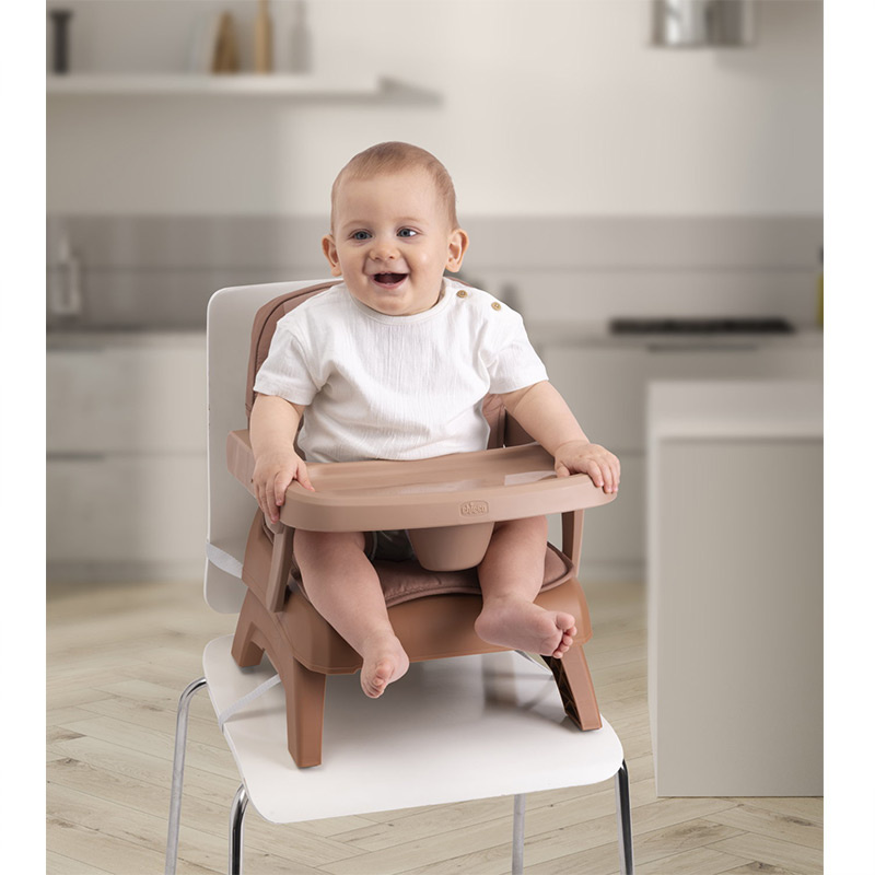 Chicco Bento, siedzisko do karmienia do użytku domowego dla najmłodszych 3w1. Przeznaczone dla dzieci, które potrafią samodzielnie siedzieć w weku co najmniej 6 miesięcy do maksymalnej wagi 15 Kg. Dzięki swojej kompaktowej budowie ułatwia przechowywanie i transportowanie. Może pełnić funkcję leżaczka, krzesełka do karmienia oraz krzesełka dla starszego dziecka. Chicco Bento można zamontować na stabilnym krześle dzięki systemowi pasków montażowych lub ustawić na podłodze. Antypoślizgowe nóżki zabezpieczają krzesełko przed przesuwaniem, zabezpieczają dziecko, a także chronią podłoże pod nimi przed zarysowaniami. Siedzisko jest miękkie i wygodne, wykonane z miłego w dotyku materiału. Zabrudzone można łatwo zdjąć i wyprać w pralce. Siedzisko krzesełka Bento jest regulowane w 2 pozycjach i można je dostosować do aktualnego wzrostu dziecka. Zdejmowana tacka ułatwia podawanie posiłków oraz zachowanie czystości przy stole.