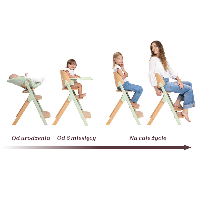 Chicco Chicco Meraviglia, wygodne ewolucyjne krzesełko do karmienia 4w1. Zostało wykonane z wysokiej jakości drewna bukowego, które gwarantuje wytrzymałość na lata. Konstrukcja przeznaczona jest do maksymalnie 110 kg wagi. Może z powodzeniem pełnić funkcję rozkładanego leżaczka, krzesełka do karmienia, krzesła dla starszego dziecka i krzesła dla dorosłych. Wszystkie te zmiany można wykonać bez konieczności używania dodatkowych narzędzi. Dzięki swoim małym rozmiarom (zaledwie 53,5 cm szerokości) i możliwości złożenia na płasko jest łatwy w przechowywaniu.