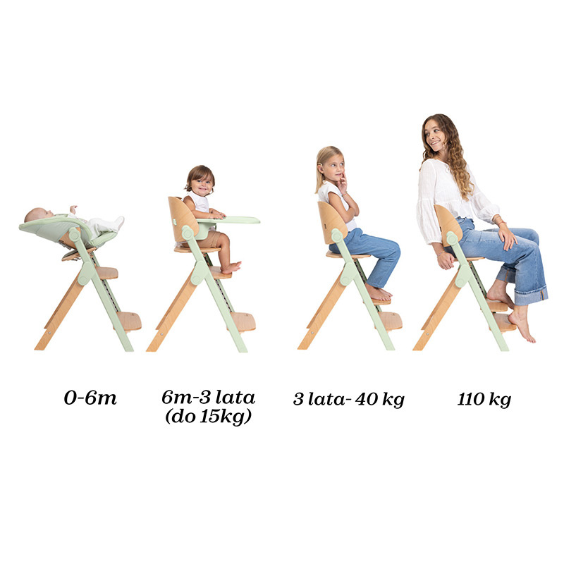 - krzesełko dla najmłodszych, starszaków i dorosłych do 110 kg wagi;