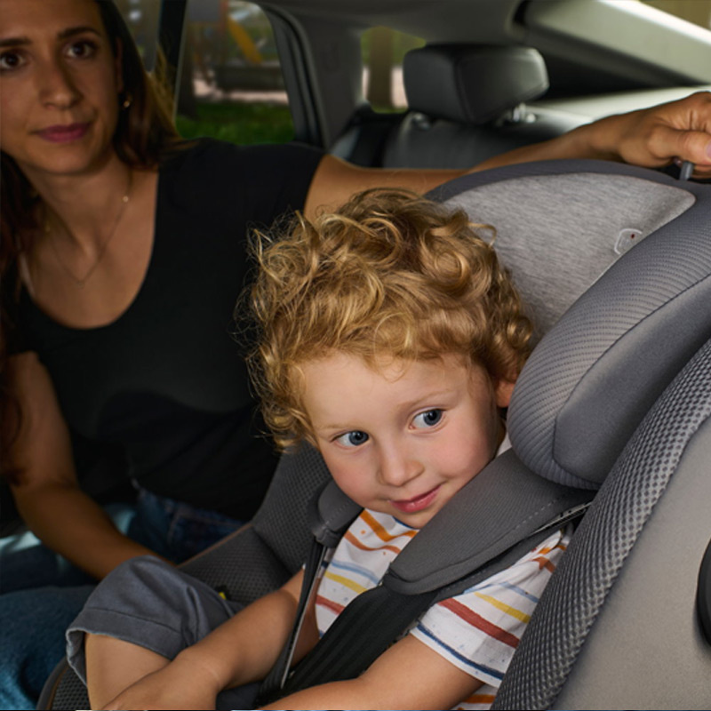 - montowany tyłem do kierunku jazdy w przedziale 40-105 cm wzrostu na obrotowej bazie isofix;
