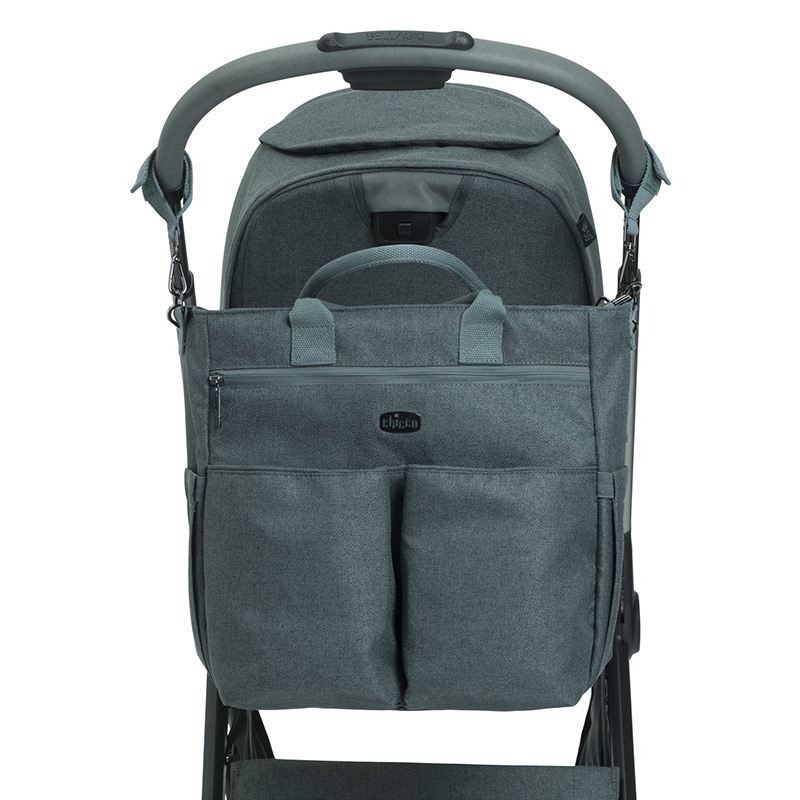 • Torba Chicco dla rodziców: pojemna, z 11 kieszeniami i przewijakiem w zestawie. Ma paski do przypięcia do wózka, a odczepiane pasy pozwalają nosić ją także na ramieniu. Wykonana z trwałych tkanin, z metalowymi detalami (haki i zamki).
