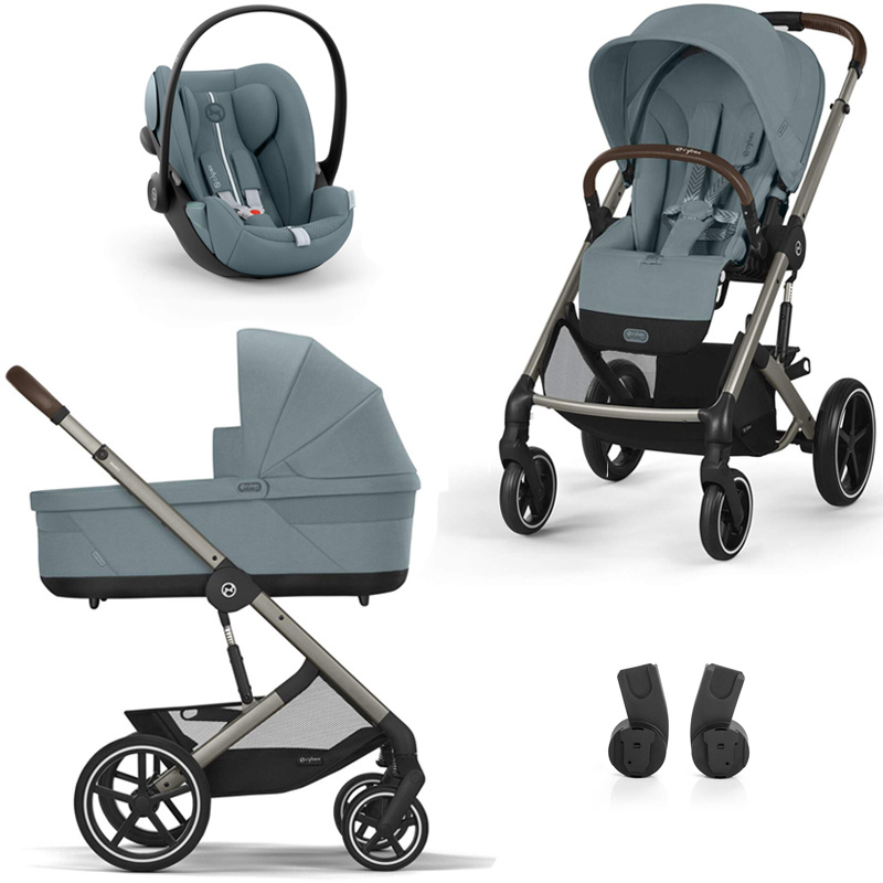 Zestaw wózek Cybex Balios S Lux 2.0 z fotelikiem Cybex Cloud G Plus i adapterami niezbędnymi do zamontowania fotelika na stelażu wózka.